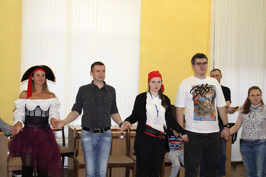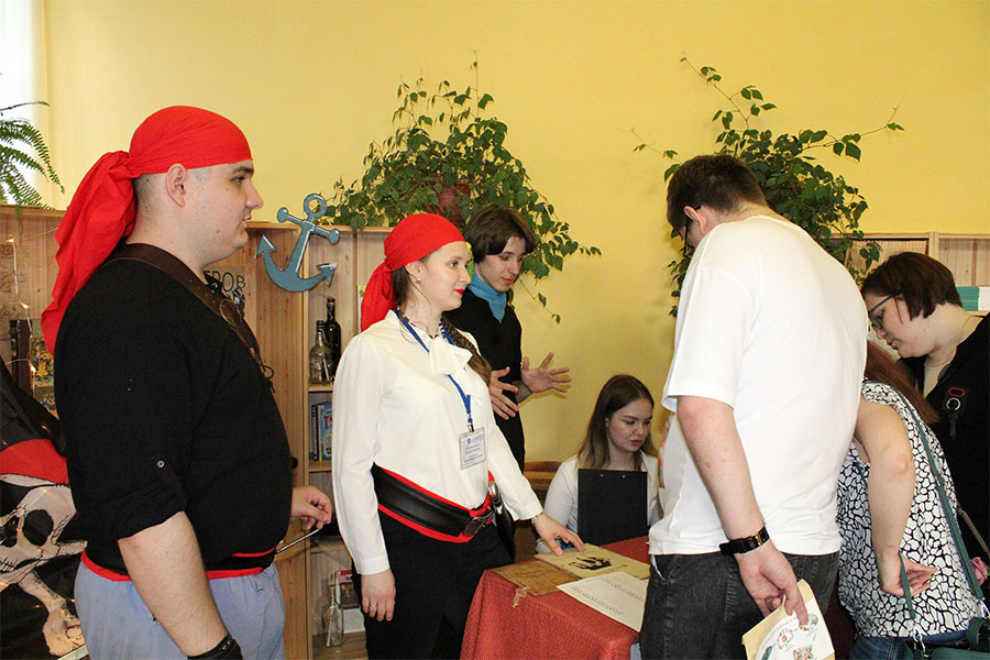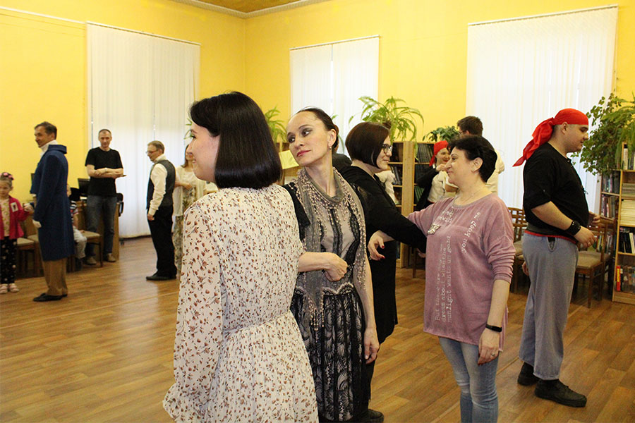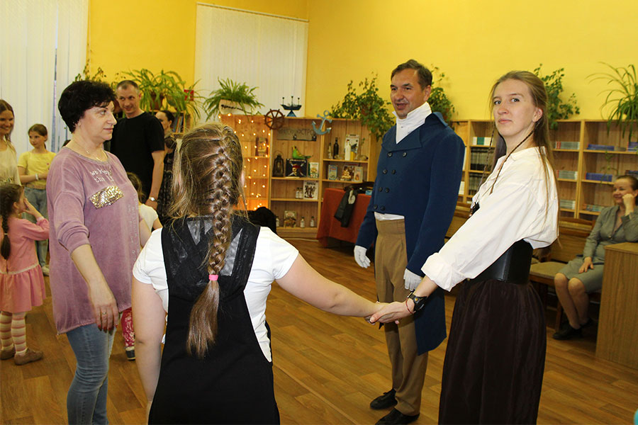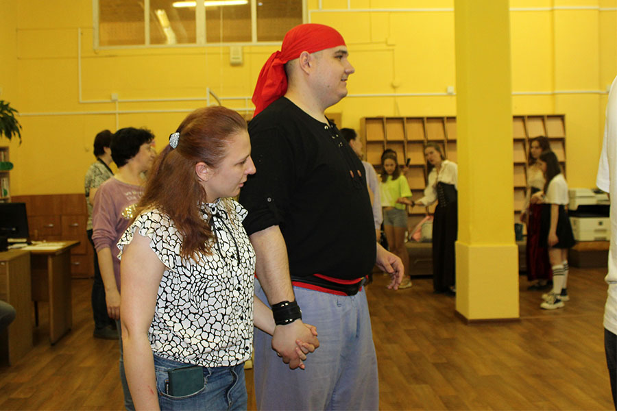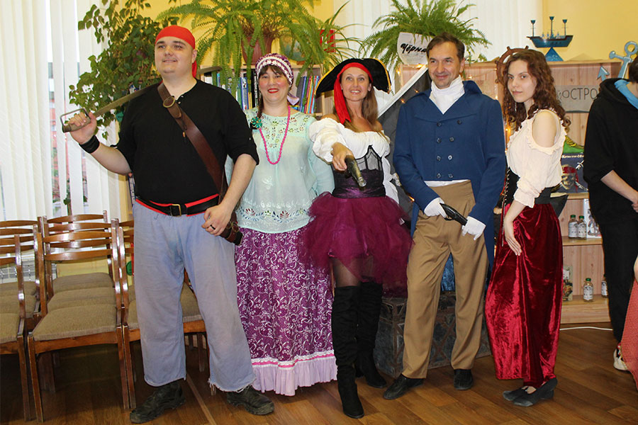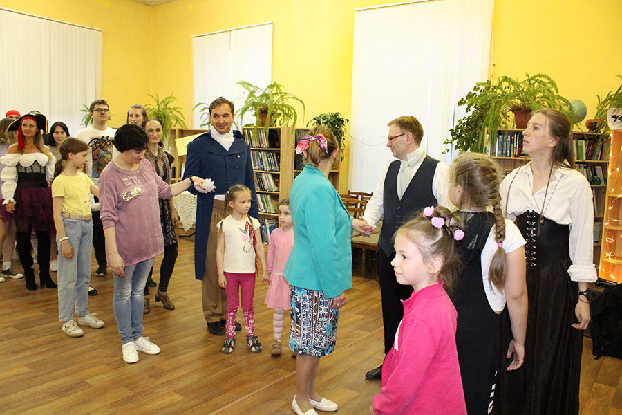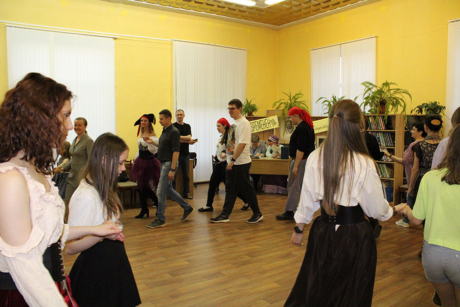 Продолжился вечер выступлением студии исторического танца «Макама». Пираты всех мастей, их очаровательные спутницы и морские разбойницы, одноногие капитаны и безусые юнги, закружились в танцевальном вихре. Гости вечера получили возможность приобщиться к бальной культуре XIX века, разучив элементы русской кадрили и европейской польки.
