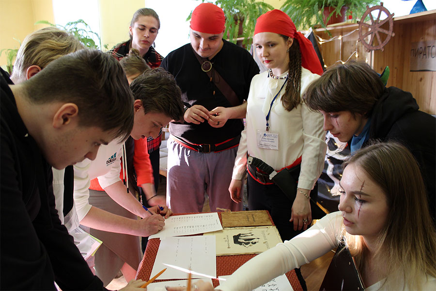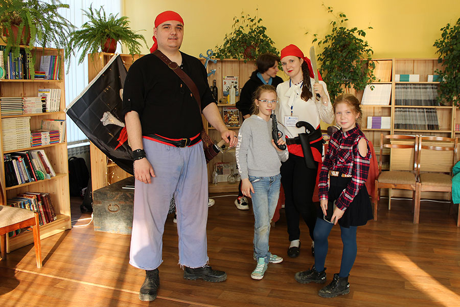 На «Сказочной полянке» участников встречали Марья-искусница и Сказочница. Посетители по предметам из волшебного сундука определяли его владельцев: Маленького Мука (восточные башмачки с загнутыми носами), Мойдодыра (мыло) и т.д. Следующим препятствием на пути участников приключения стал «Пиратский остров». Морские разбойники рассказали об азбуке Морзе, бутылочной почте и предложили расшифровать таинственное послание.