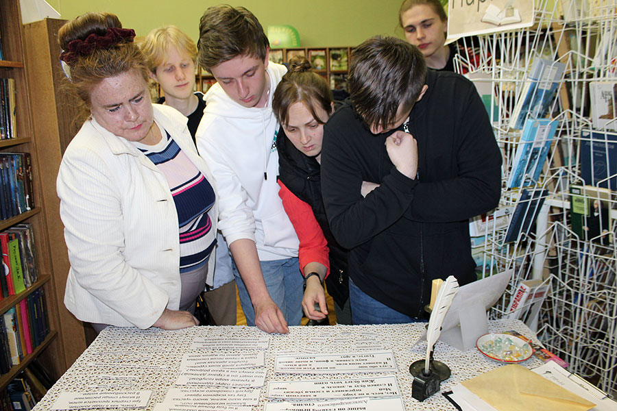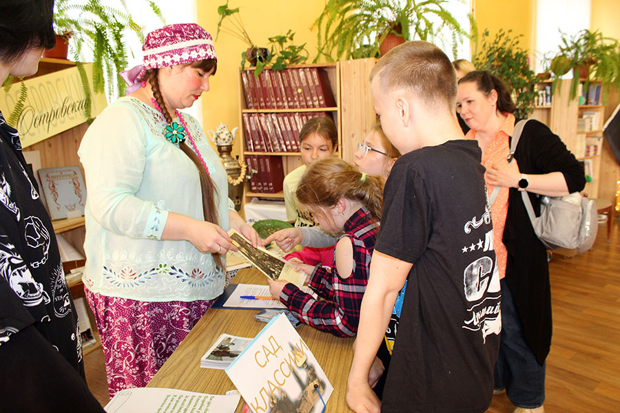 Акулина Гавриловна Красавина, сваха из пьесы «Женитьбы Бальзаминова» Александра Островского, встречала гостей в «Саду классики». Команды «посетили» портретную галерею и отгадали изображенных писателей, вспомнили русских литераторов, чьи произведения были экранизированы и прогулялись по «Аллее любимых деревьев писателей». Поэзии была посвящена остановка «Поэтический Парнас». Дети и взрослые увлеченно соотносили четверостишия стихотворений с именами авторов, восстанавливали строки А.С. Пушкина «Я памятник себе воздвиг нерукотворный...», разгадывали ребусы. В финале команды собрали высказывание поэта Виктора Бокова о книге.