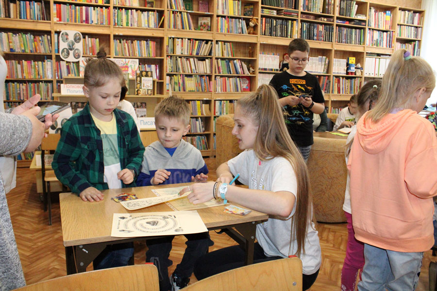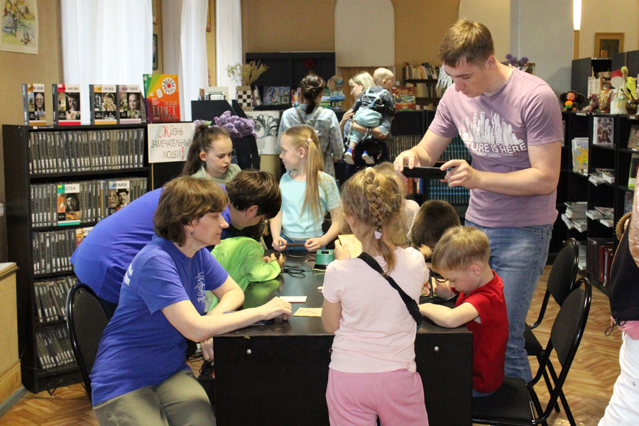 «Расколдовать» литературных героев маленькие читатели смогли в квесте «Пусть компьютер отдохнет!». С помощью ребят из «Ивановского волонтерского центра» выполняли задания, получали ключи и составляли имена персонажей. Желающих поиграть было очень много и квест проводился дважды. Робот-библиотекарь МАЯК расположился в зале сказок и советовал детворе книги, которые можно почитать летом. Гости охотно общались с электронным помощником, задавали множество вопросов. Весь вечер на площадке работала фотозона «Летние приклюЧтения», посетители с удовольствием делали снимки на полянке с забавным зонтиком.