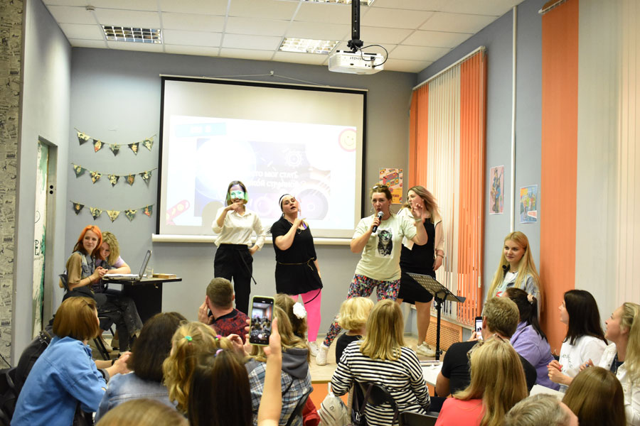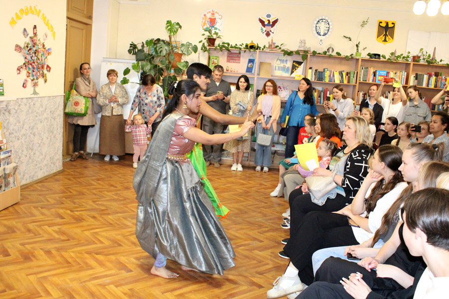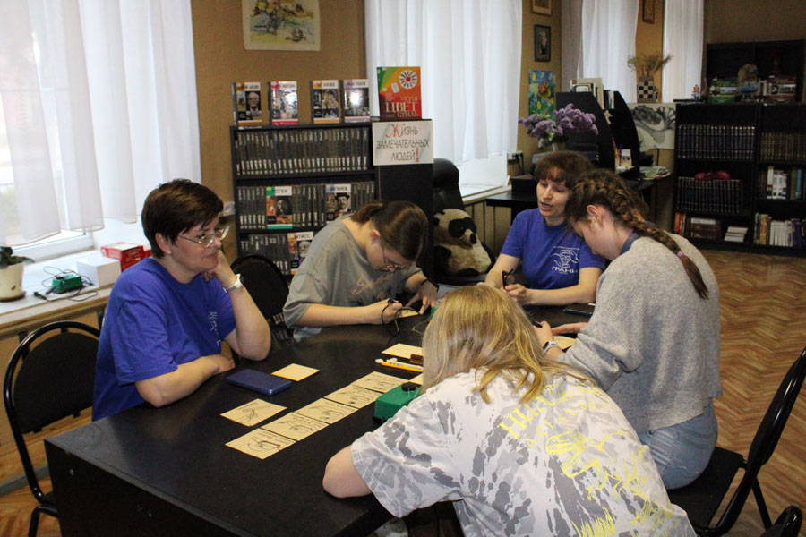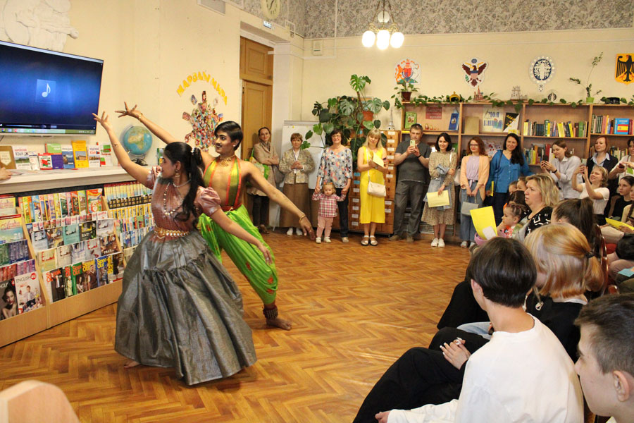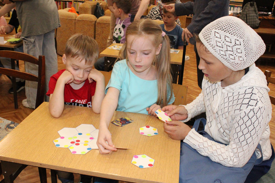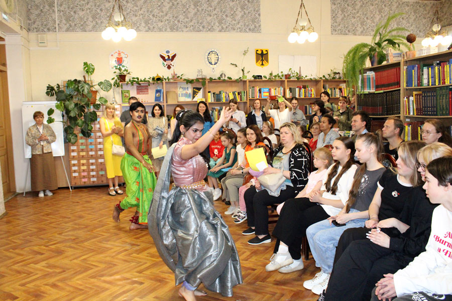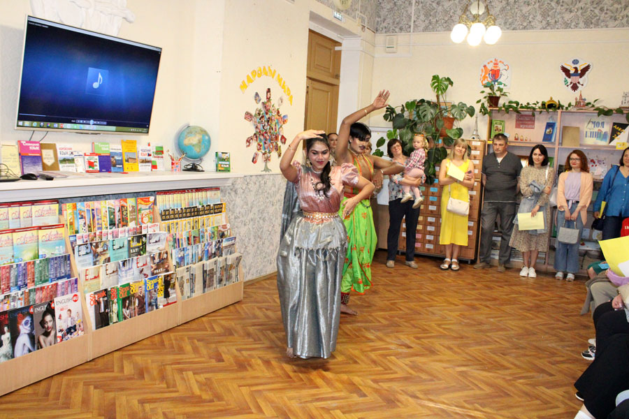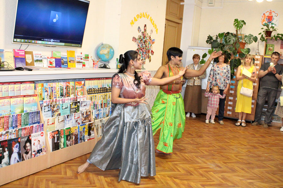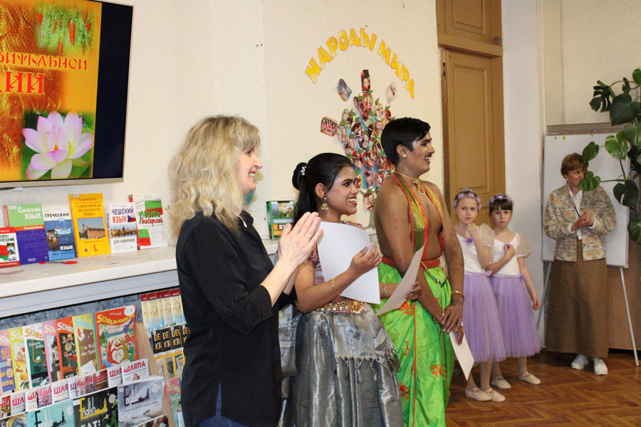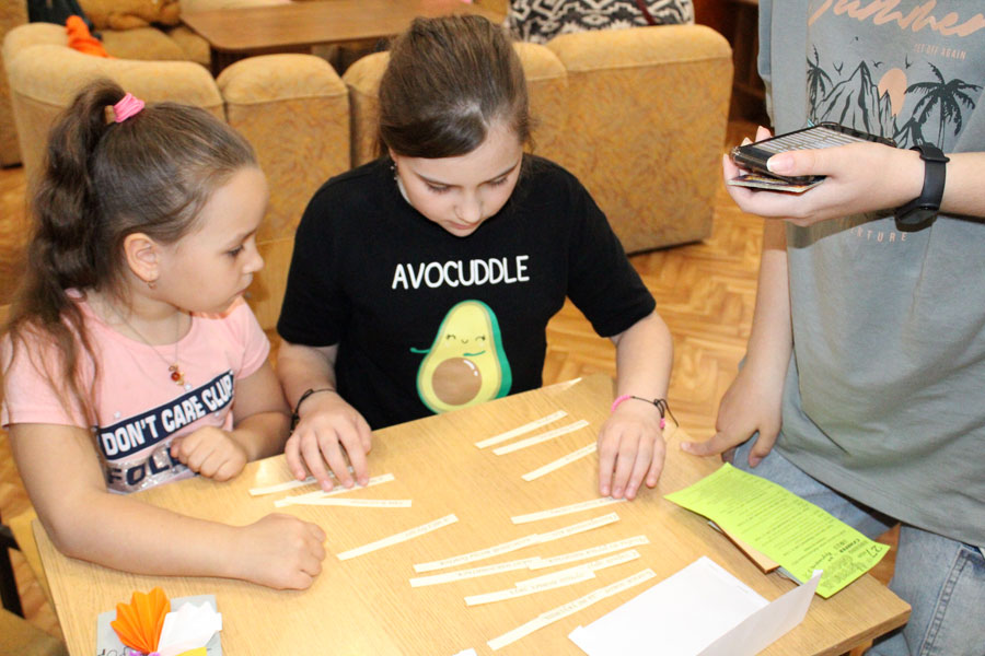Интеллектуальная игра «Дружба народов» завершила работу площадки, ее участниками стали гости библиотеки и ребята из образцового хореографического ансамбля «Улыбка». Разнообразные конкурсы и задания о языках, лингвистических заимствованиях, поговорках, пиктограммах и песнях народов мира перемежались веселыми танцами, юмором и улыбками.