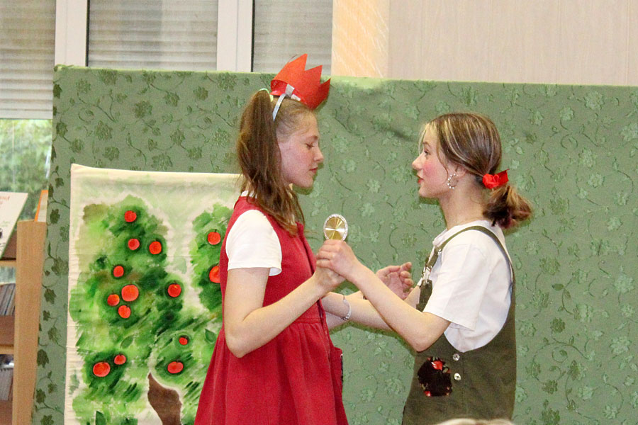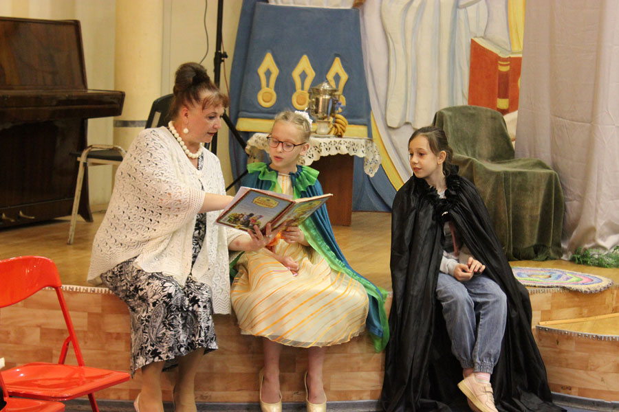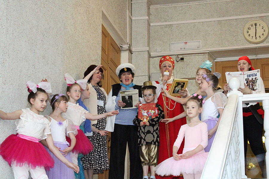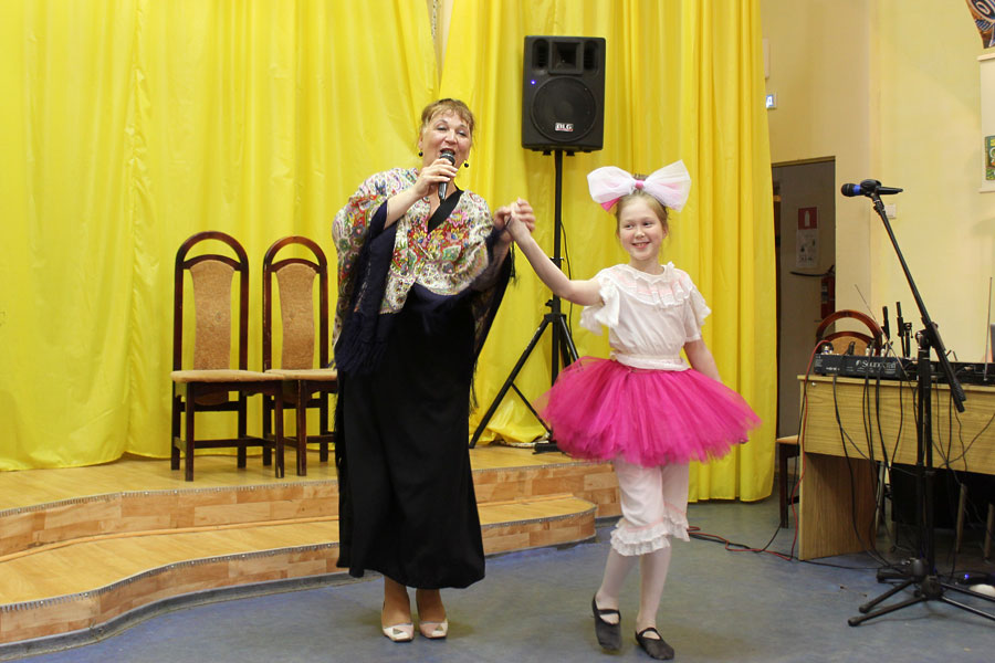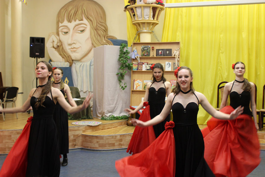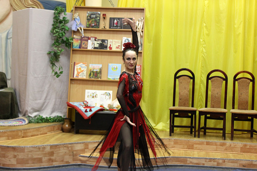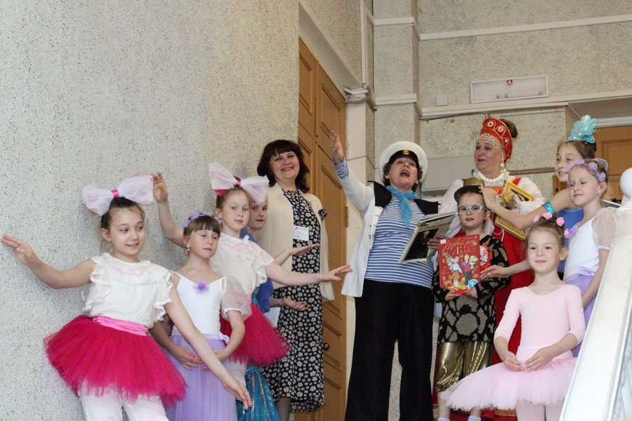 Эстафету подхватила шестилетняя Иветта Курахтанова, она прочитала стихотворение Сергея Ильина «Однажды встретились две книжки», автор которого говорит, что книжные тайны открываются лишь тем, кто бережет книги. Анастасия Потёмкина – участница «Фортуны», исполнив песню «Добрые сказки», пригласила гостей на инсценировку «Мухи-цокотухи». Удивительную композицию подарила аудитории Ульяна Кротких из школы танцев ID, паря на сцене в белом костюме, похожем на облако.