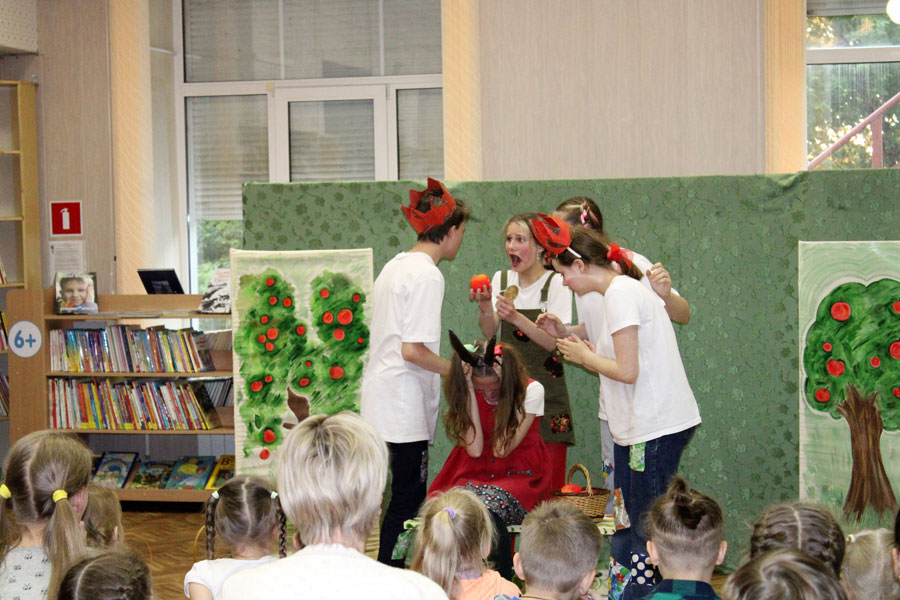 Самым юным читателям была предложена большая развлекательная программа «Вместе весело» в отделе «Детство». С большим успехом выступили воспитанники театра детей и молодежи «Жаворонок». Маленькие артисты показали кукольный спектакль по произведениям «Тараканище» и «Путаница» Корнея Чуковского и сценку «Плутишка-кот» по рассказу Константина Ушинского. Ребята постарше подготовили веселый кукольный спектакль «Клочки по закоулочкам» по пьесе Григория Остера. Забавная постановка запомнилась танцем Волка, отважным Петухом и маленьким Зайчиком. А спектакль-сказка «Наказанная царевна» рассказал о строптивой принцессе, дружбе и взаимовыручке.