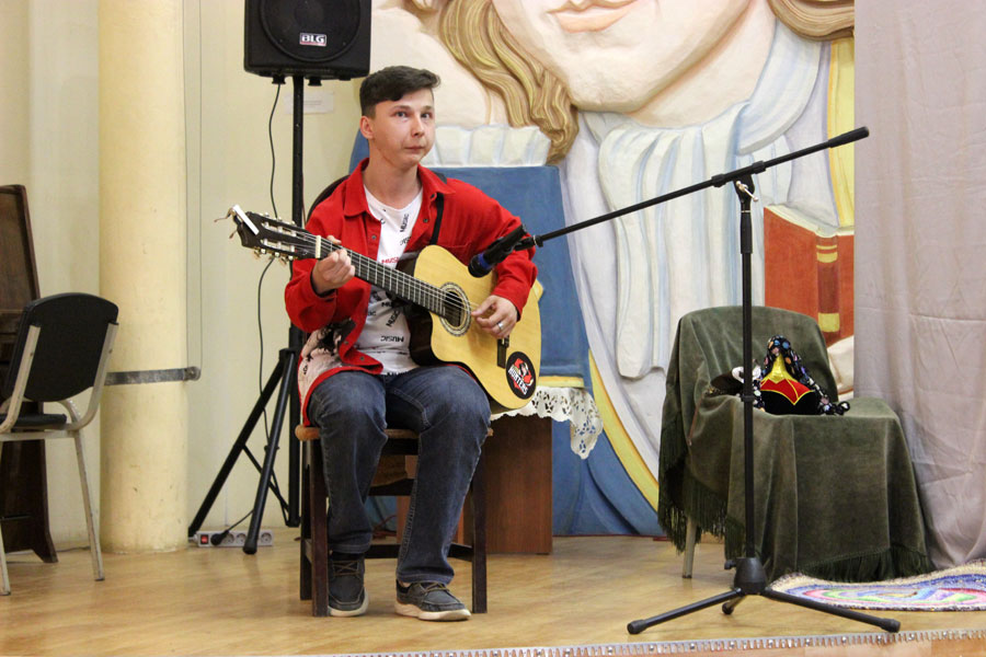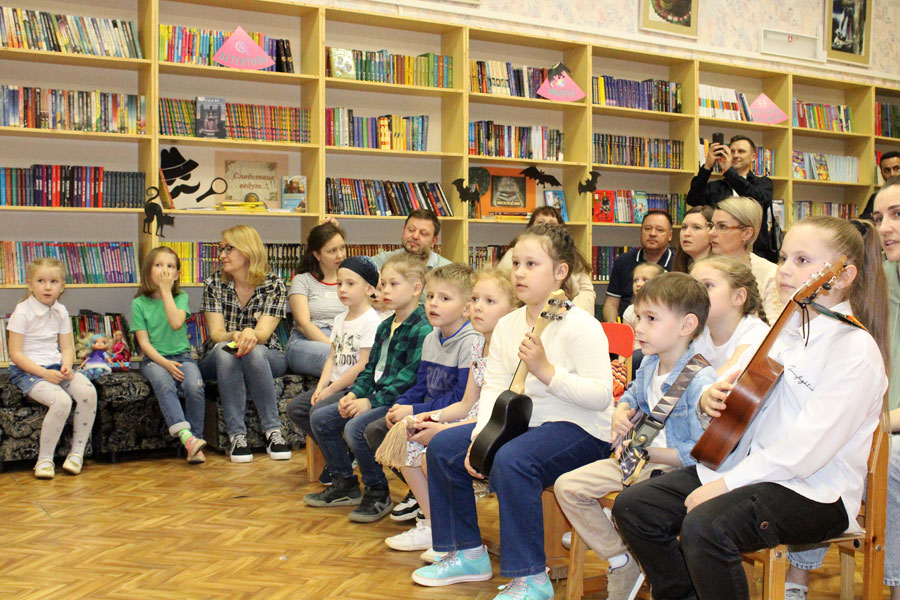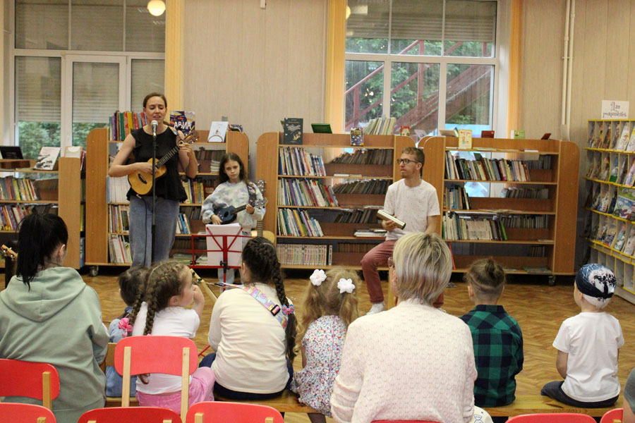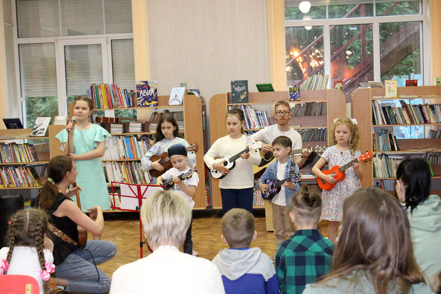Продолжилась программа концертом воспитанников студии «Мастерская на Багаева, 24». Юные артисты играли на укулеле, пели известные песни из детских фильмов и мультфильмов. Зрители с удовольствием подпевали и даже поиграли на разных музыкальных инструментах. А после концерта желающие поучаствовали в мастер-классе по игре на гавайской гитаре.