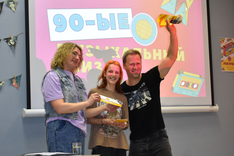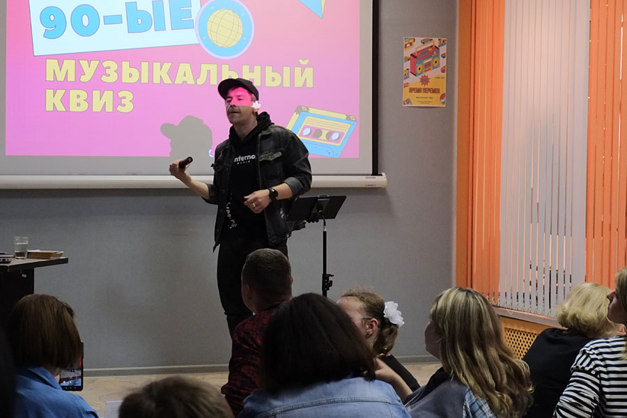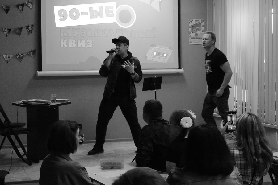 «Время перемен» ждало участников площадки в Молодежном центре, ключевым событием которой стал музыкальный квиз «Девяностые». Игра, состоящая из 6 раундов, объединила 14 команд любителей ярких 90-х. В «Разминке» участники угадывали песню по реверсу, называли двух музыкантов, лица которых были объединены, вспоминали исполнителя оригинала песни.