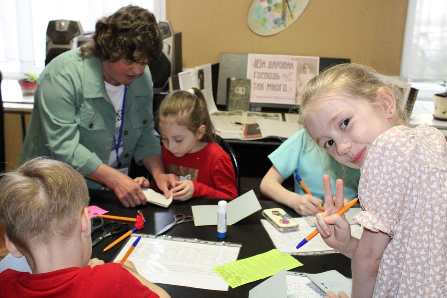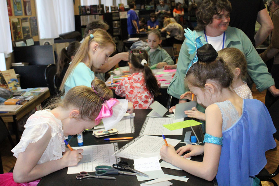 Для детей был организован мастер-класс «Книга с потайными страницами»: участники не только создавали уникальные издания, но и делали на их страницах записи глаголицей. На мастер-классе художника декоративно-прикладного искусства Н.А. Пыряевой юные гости с удовольствием сделали красивые книжные закладки. Кто бы мог подумать, что они могут быть в виде большого карандаша, котика, бабочки и даже лягушки.