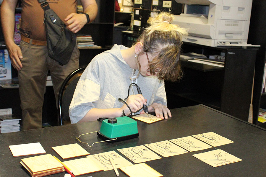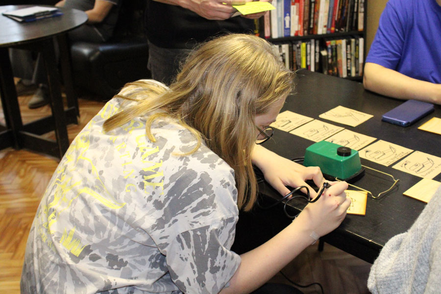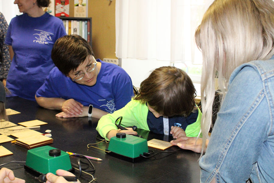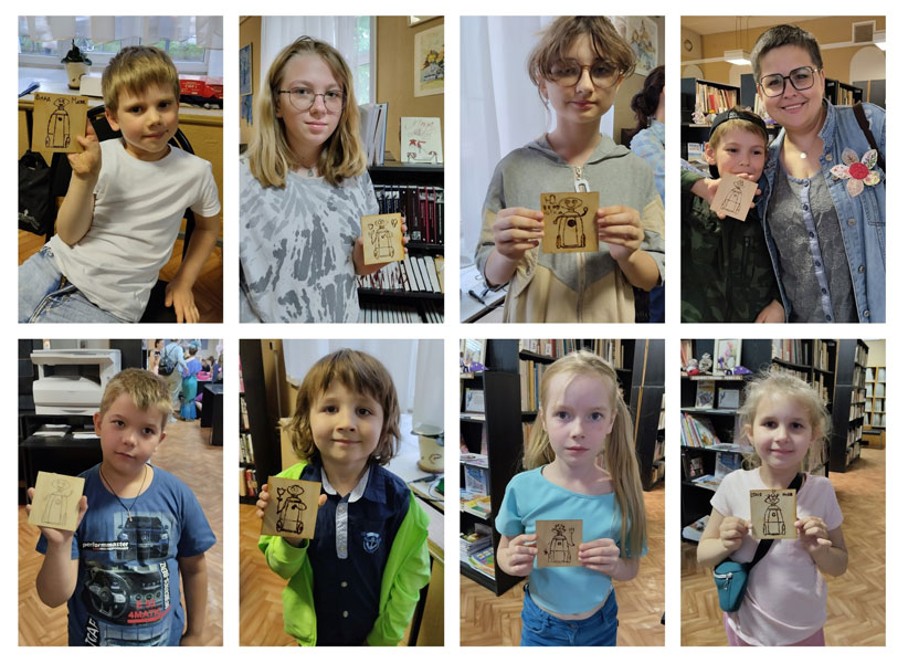 Гости высоко оценили выставку «Знакомые все лица» с миниатюрными пирографическими портретами известных писателей. Автор работ – Богдан Зелинский из организации «Грани», объединившей молодых инвалидов и их родителей. После знакомства с экспозицией читатели с удовольствием отвечали на вопросы, связанные с жизнью и творчеством литераторов, изображенных на портретах, а затем пробовали свои силы в выжигании по дереву. А выступление хора Преображенского храма «Диолика» встретило самый теплый прием зрителей.