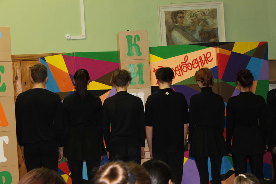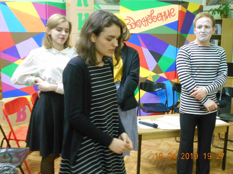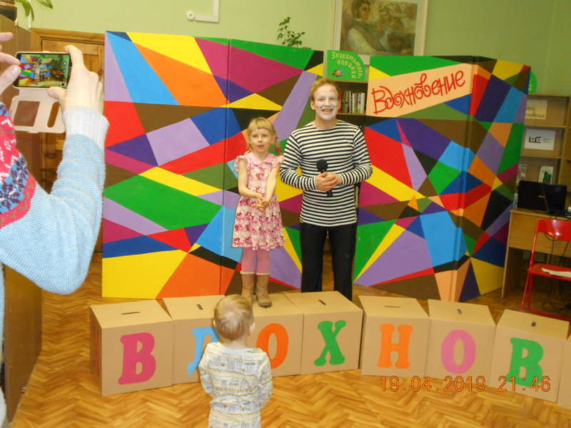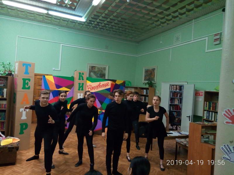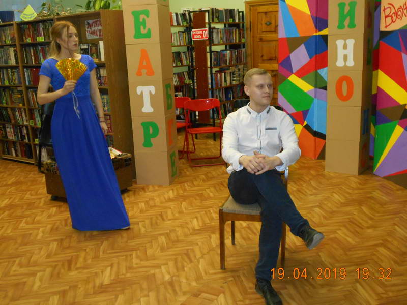 Второй частью программы была «Азбука актера», которую представили начинающие актеры – студенты Ивановского колледжа культуры (мастерская актера Ивановского областного драматического театра Евгения Семенова). Яркое, динамичное выступление молодых артистов не оставило никого равнодушным. Зрители увидели перевоплощения в животных, оживление предметов, память физических действий и многое другое. Библиотекари, по традиции, предложили посетителям литературную лотерею «Удивительный мир театра и литературы» с интересными вопросами и сувенирами. Каждый гость сектора «Абонемент» прикоснулся к миру литературы и театра, открыл для себя много интересного и необычного. В заключение ведущий площадки Р. Вичужанин сказал замечательные слова: «Театр начинается с первого шага в библиотеку, где читатель знакомится с книгой. Театр и библиотека – это два неразрывных сообщества». Финальным аккордом вечера стала фотосессия на фоне театральных ширм и сценических кубиков со словом «Вдохновение». Пусть муза всегда будет рядом с теми, кто несет людям свет и добро!