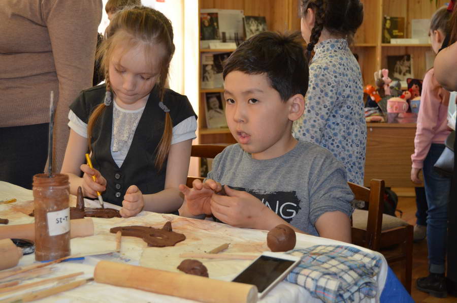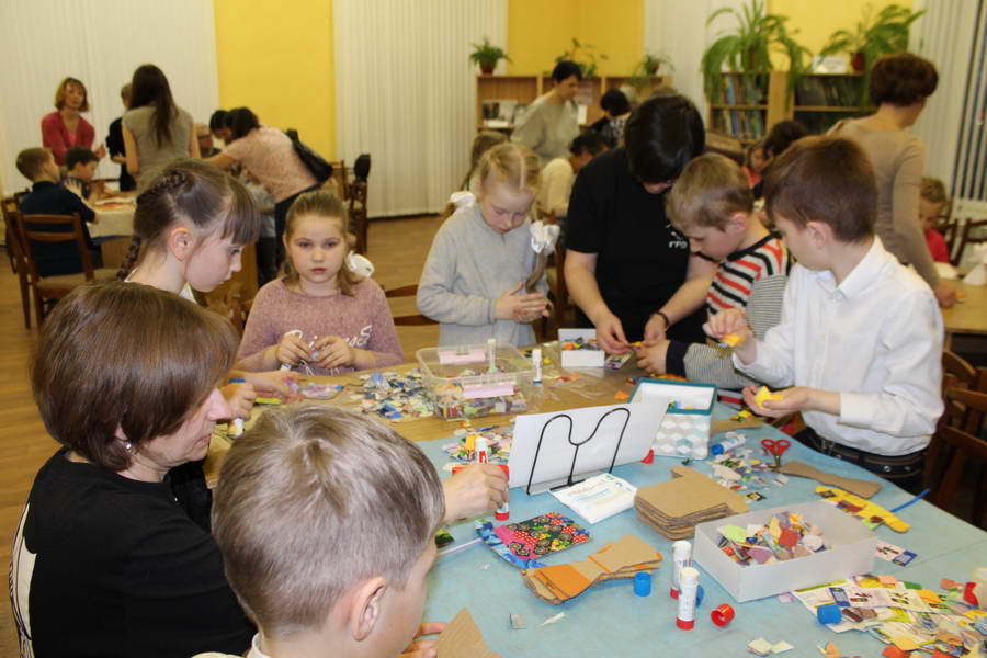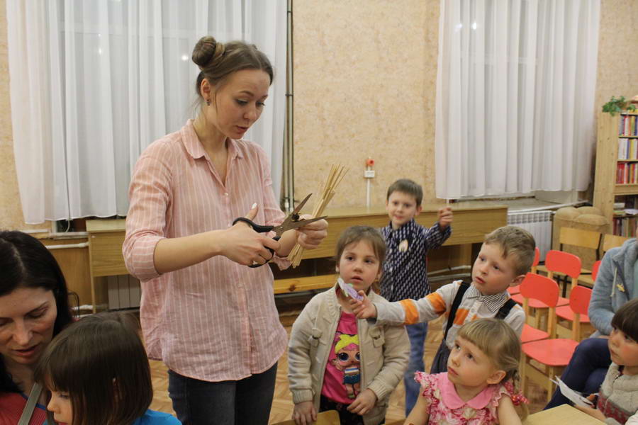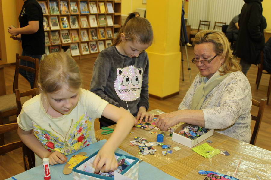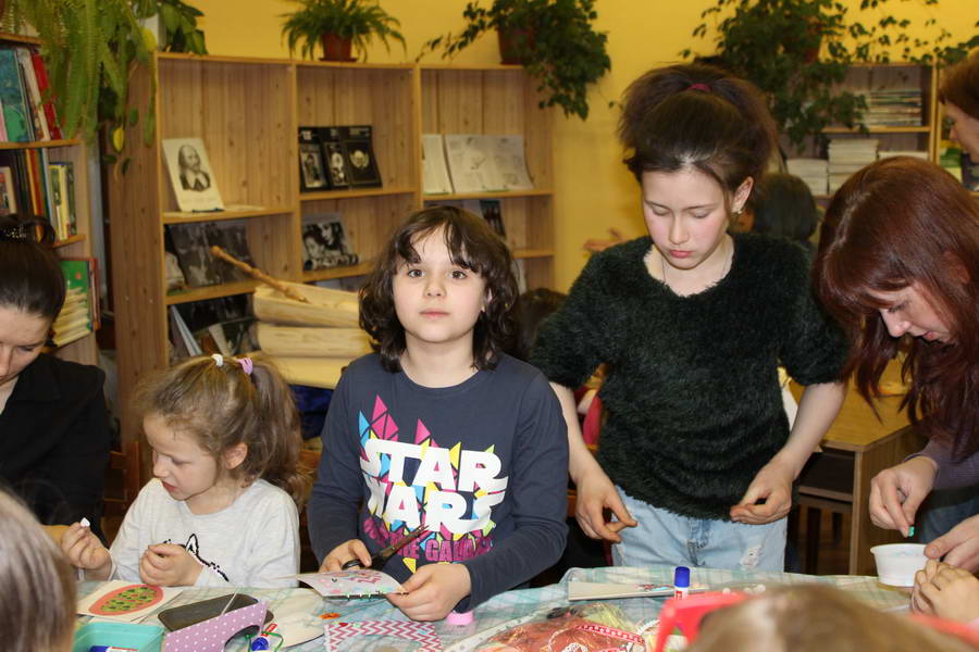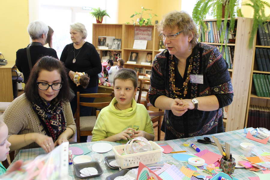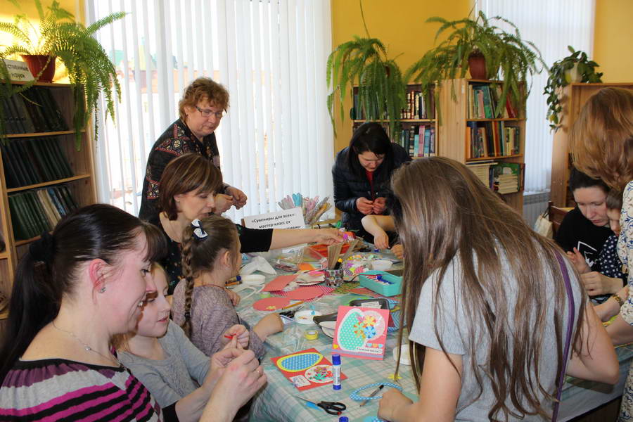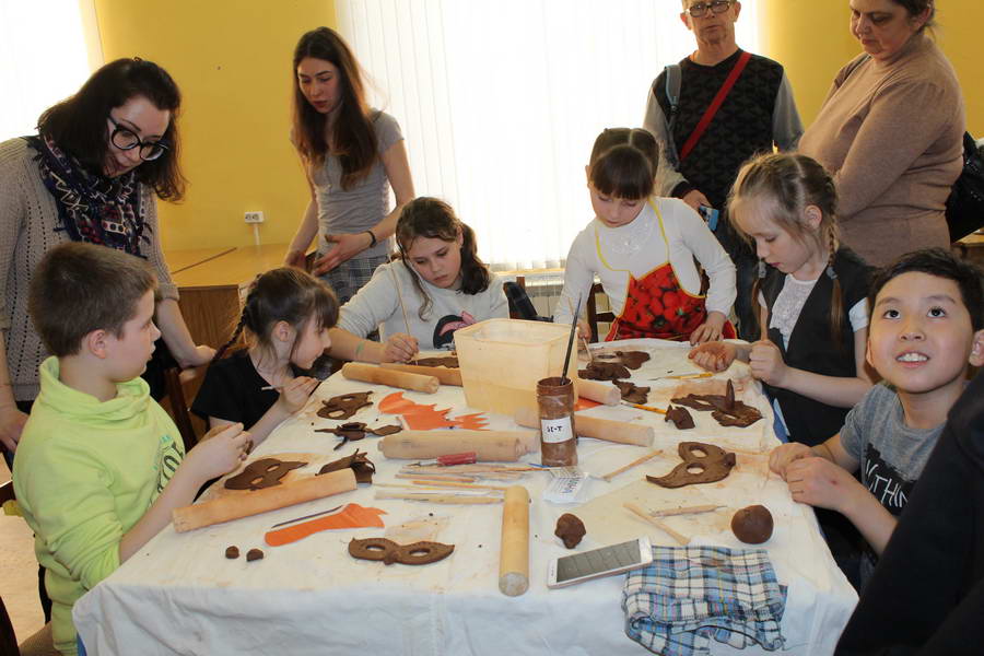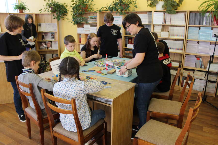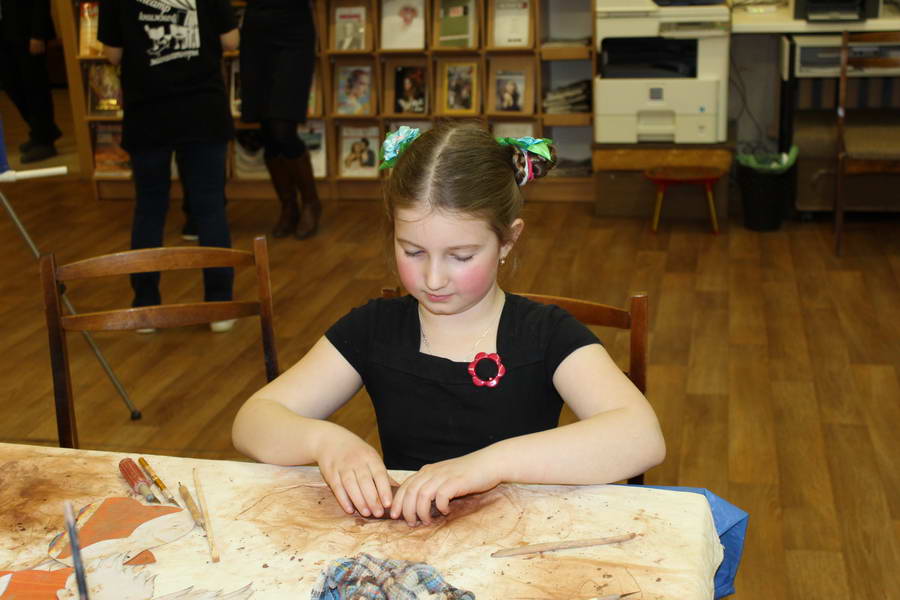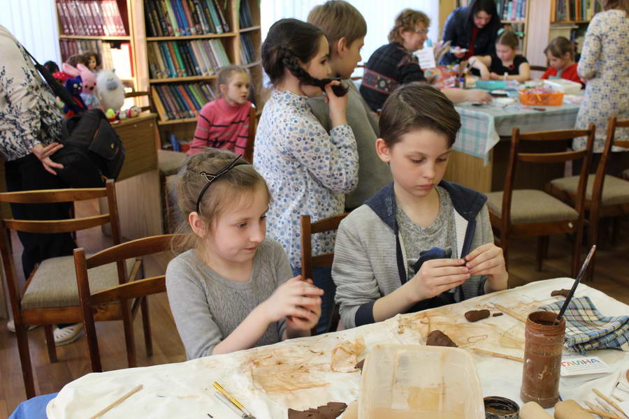 Читальный зал «Отрочество. Юность» стал площадкой для творческих мастер-классов и раскрыл «Секреты закулисья». Гости познакомились с различными видами декоративно-прикладного искусства, хобби и увлечений. Мастерская керамики и гончарного мастерства «Глина» предложила изготовить «Театральные маски». Под руководством А. Заварзиной гости раскатывали основу из глины и наносили на нее удивительные рисунки. Интересно было наблюдать как ребята придавали своим заготовкам характер и выразительность. Анастасия рассказывала участникам о нюансах работы с материалом и истории театрального атрибута. Театр книжной миниатюры Ивановской областной общественной организации молодых инвалидов и их родителей «ГРАНИ» представил мастер-класс «Ситцевая бутафория» по изготовлению текстильного сувенира. С помощью разноцветных лоскутков ткани и картонной основы все желающие изготовили шляпку и бабочку для фотосессии. Под чутким руководством художника декоративно-прикладного искусства Н. Пыряевой дети и взрослые сделали сувениры к светлой Пасхе: праздничный венок и поздравительную открытку. Юные и взрослые гости акции с удовольствием творили, проявляя свою фантазию и мастерство. Выставка-хобби и мастер-класс декоративных вязаных изделий «Игрушка театральная – очень уникальная» от Т. Рябовой раскрыла секреты по изготовлению поделок и кукол из пряжи. Е. Павлычева помогала мастерить «Мышь офисную новогоднюю» и «Летящую рыбу»: гости с удовольствием вырезали из бумаги мышку, а из природного материала сделали рыбку. Все мастер-классы были востребованы и получили положительные отклики.