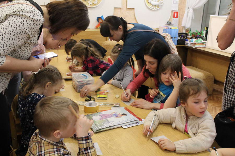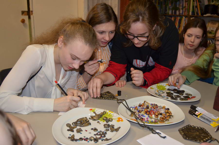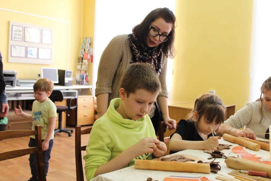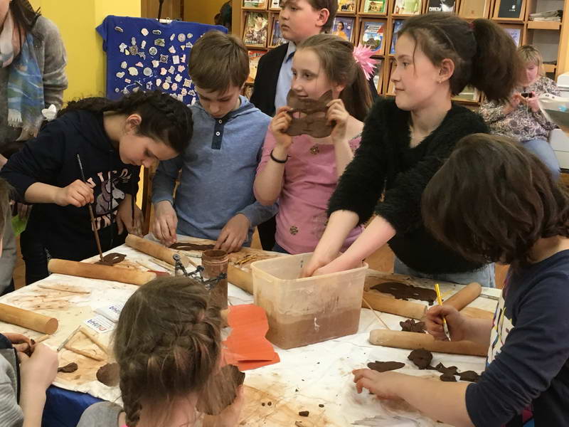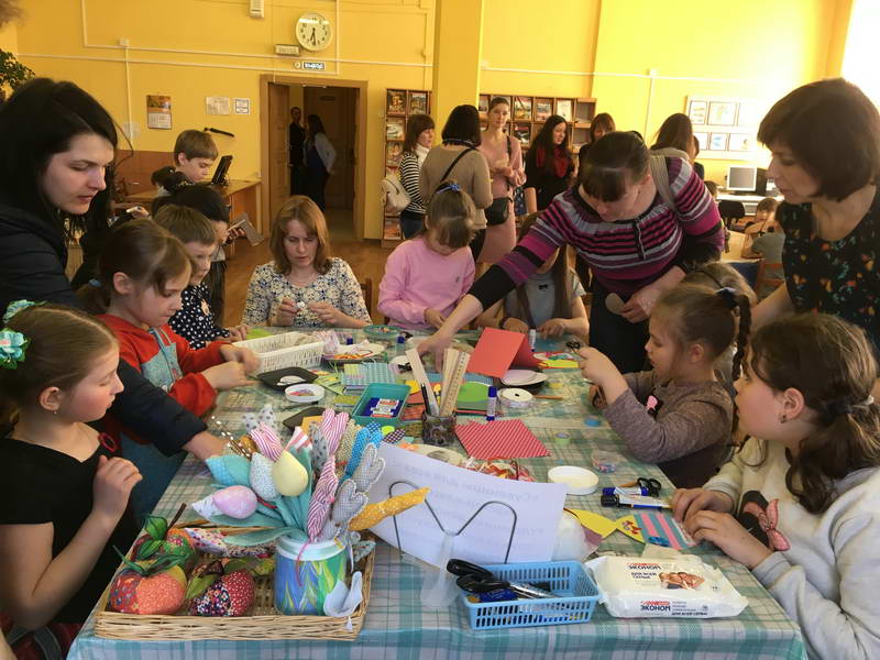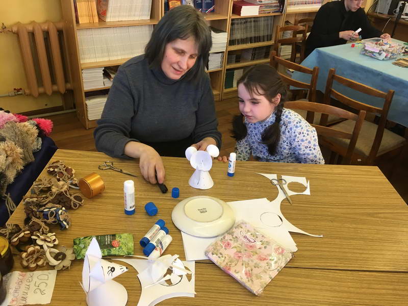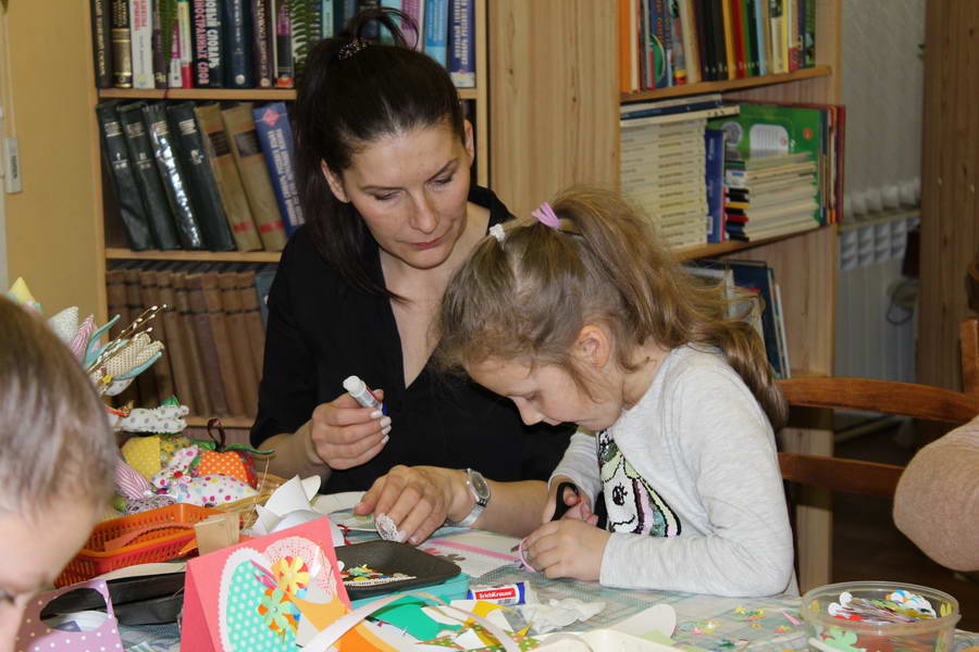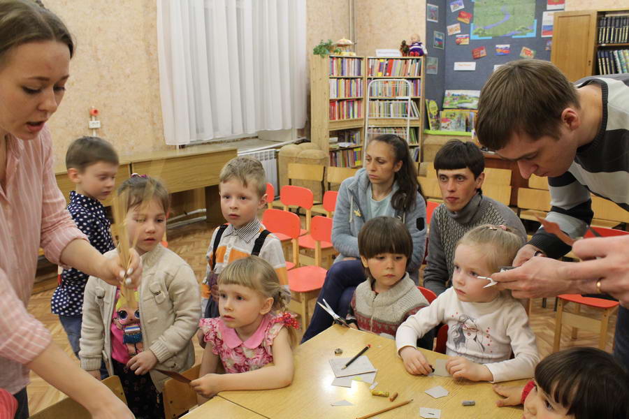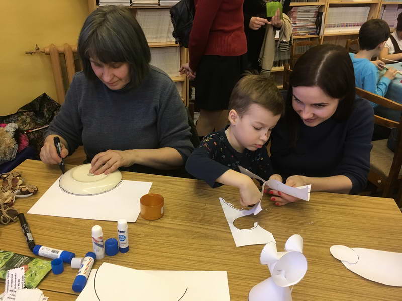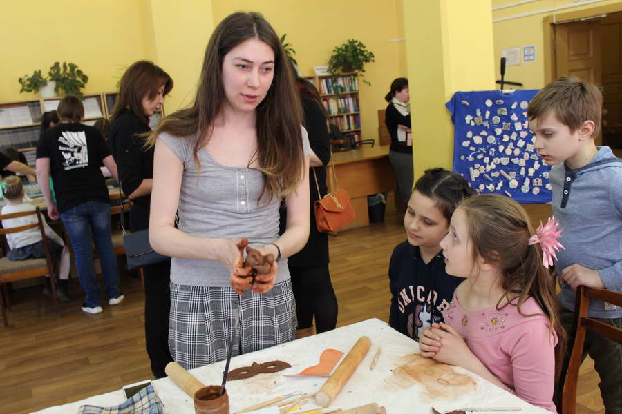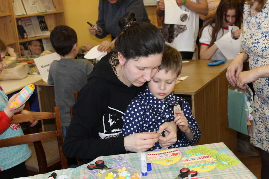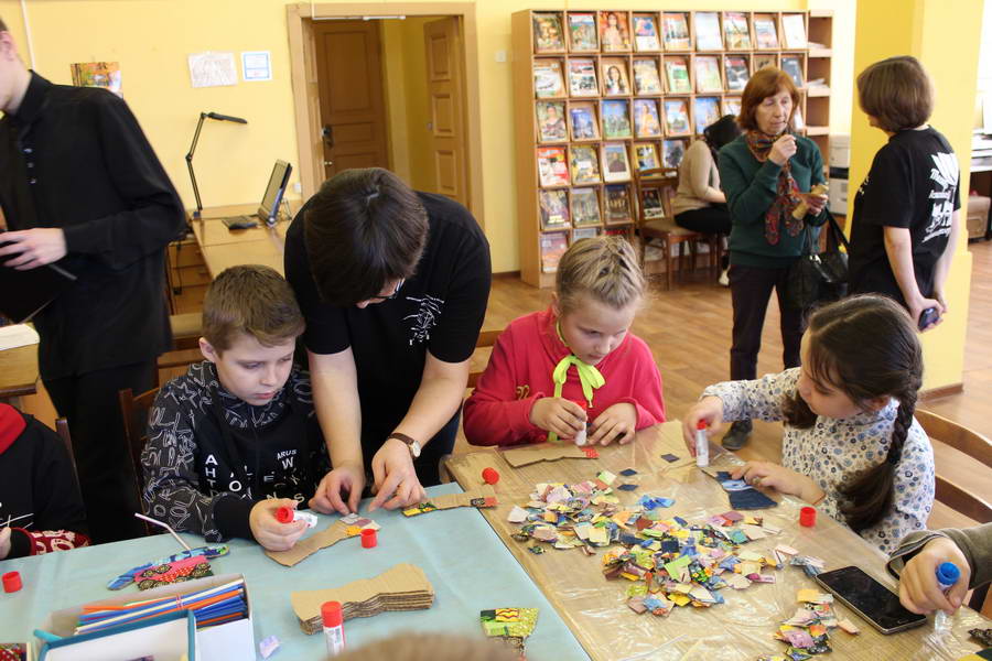 Читальный зал «Отрочество. Юность» стал площадкой для творческих мастер-классов и раскрыл «Секреты закулисья». Гости познакомились с различными видами декоративно-прикладного искусства, хобби и увлечений. Мастерская керамики и гончарного мастерства «Глина» предложила изготовить «Театральные маски». Под руководством А. Заварзиной гости раскатывали основу из глины и наносили на нее удивительные рисунки. Интересно было наблюдать как ребята придавали своим заготовкам характер и выразительность. Анастасия рассказывала участникам о нюансах работы с материалом и истории театрального атрибута. Театр книжной миниатюры Ивановской областной общественной организации молодых инвалидов и их родителей «ГРАНИ» представил мастер-класс «Ситцевая бутафория» по изготовлению текстильного сувенира. С помощью разноцветных лоскутков ткани и картонной основы все желающие изготовили шляпку и бабочку для фотосессии. Под чутким руководством художника декоративно-прикладного искусства Н. Пыряевой дети и взрослые сделали сувениры к светлой Пасхе: праздничный венок и поздравительную открытку. Юные и взрослые гости акции с удовольствием творили, проявляя свою фантазию и мастерство. Выставка-хобби и мастер-класс декоративных вязаных изделий «Игрушка театральная – очень уникальная» от Т. Рябовой раскрыла секреты по изготовлению поделок и кукол из пряжи. Е. Павлычева помогала мастерить «Мышь офисную новогоднюю» и «Летящую рыбу»: гости с удовольствием вырезали из бумаги мышку, а из природного материала сделали рыбку. Все мастер-классы были востребованы и получили положительные отклики.
