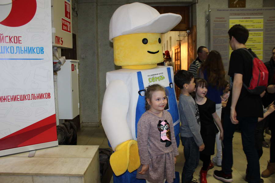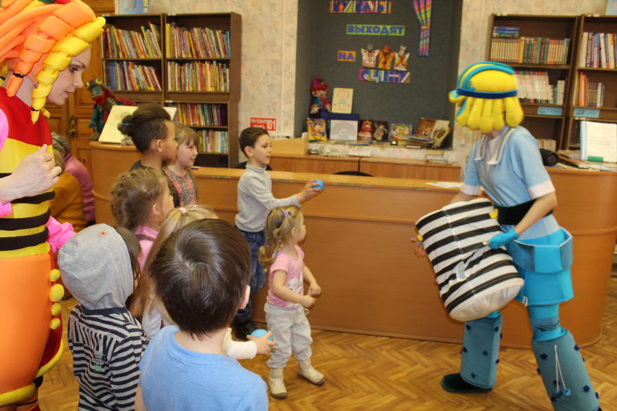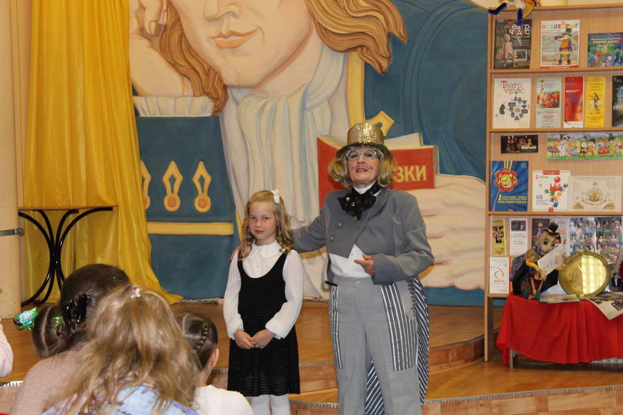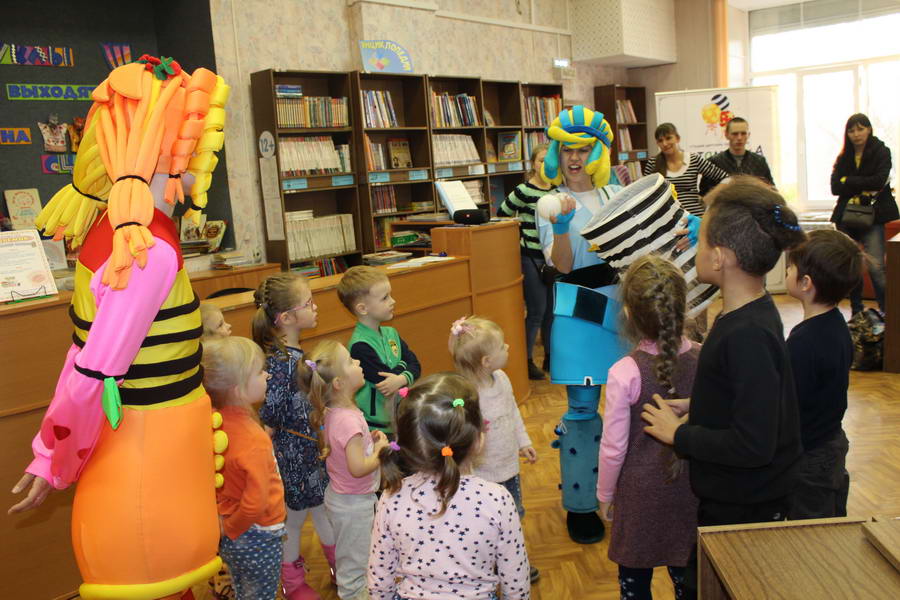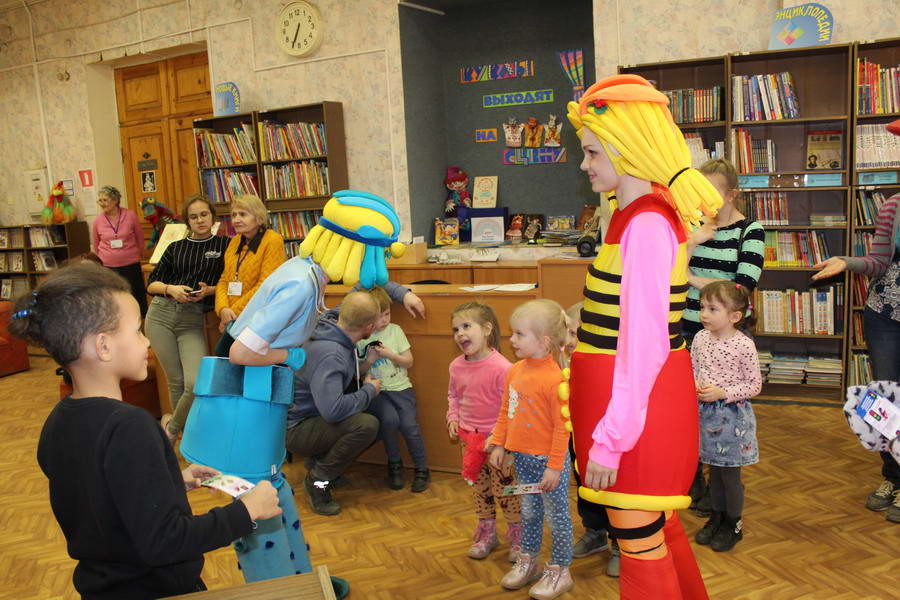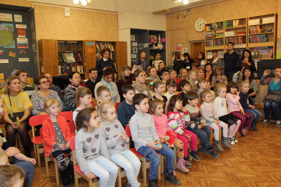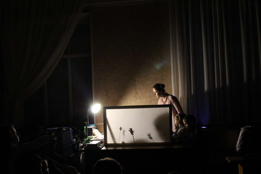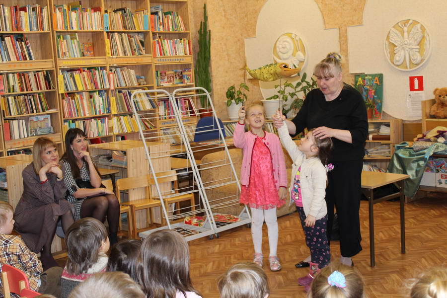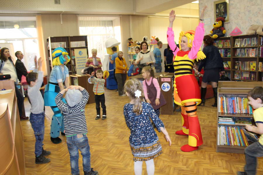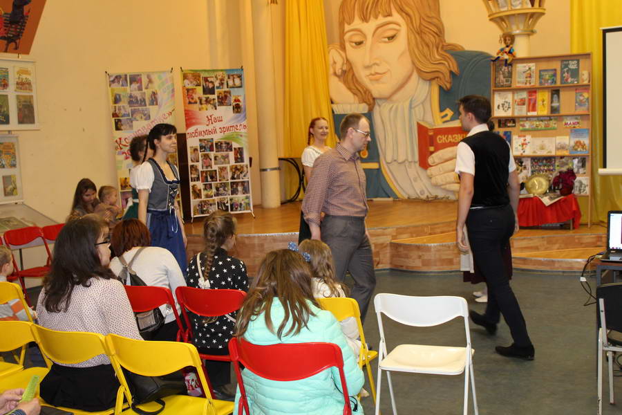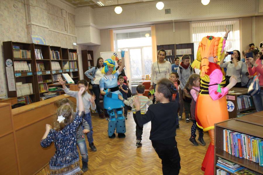 Программу «Дети выходят на сцену» открыл сотрудник отдела «Детство» – робот МАЯК. Представившись, он поприветствовал самых юных гостей и их родителей, рассказал о теме акции. Затем познакомил собравшихся с программой площадки и пригласил в Школу театральных аплодисментов. Старт вечеру дала детская театральная студия «Артистик» (руководитель Т. Зимина) спектаклем «Круговорот сказок», главными героями которого стали сказочные персонажи. В продолжение программы актеры Ивановского театра кукол Светлана Лобанова и Вера Павлова представили мастерскую «Куклы открывают секреты». Они познакомили с репертуаром театра кукол, дали рекомендации родителям о правилах его посещения. Затем рассказали о действе за кулисами во время кукольного представления. Вместе с гостями сделали гимнастику для пальцев, рук и артикуляционного аппарата. Актеры раскрыли некоторые секреты кукольного театра: например, высота ширмы всегда 170 сантиметров; для актеров маленького роста существуют специальные ботинки на платформе. В завершении работы мастерской все желающие смогли примерить необычную обувь, «поиграть» куклами и сфотографироваться с ними. Поддержал тему вечера мастер-класс «Знакомьтесь: Театр теней» от Ирины Дендюк (творческая мастерская «Созвездие Лисы»). Дети и взрослые узнали об особенностях организации театра теней, выбрали сказку для постановки, вспомнили ее содержание и героев, после чего изготовили кукол и разыграли спектакль. Желающих принять участие в представлении было так много, что его пришлось повторить дважды. Также в отделе работала игровая площадка с аниматорами от студии детских праздников «ВитаминкА». Ребята смогли принять участие в замечательной и веселой игровой программе «Сказочный патруль», сфотографироваться с любимыми мультяшными героями. Сеть развивающих центров «Сема» представила ростовую куклу Лего, которая стала интересным объектом для фото. Сюрпризом для маленьких и взрослых участников библиосумерек стала возможность близкого знакомства с необычайными гостями – тропическими бабочками. Закрыл работу детской театральной площадки робот МАЯК, он поблагодарил всех за участие в акции «Библиосумерки – 2019» и пригласил гостей стать друзьями и постоянными читателями библиотеки.
