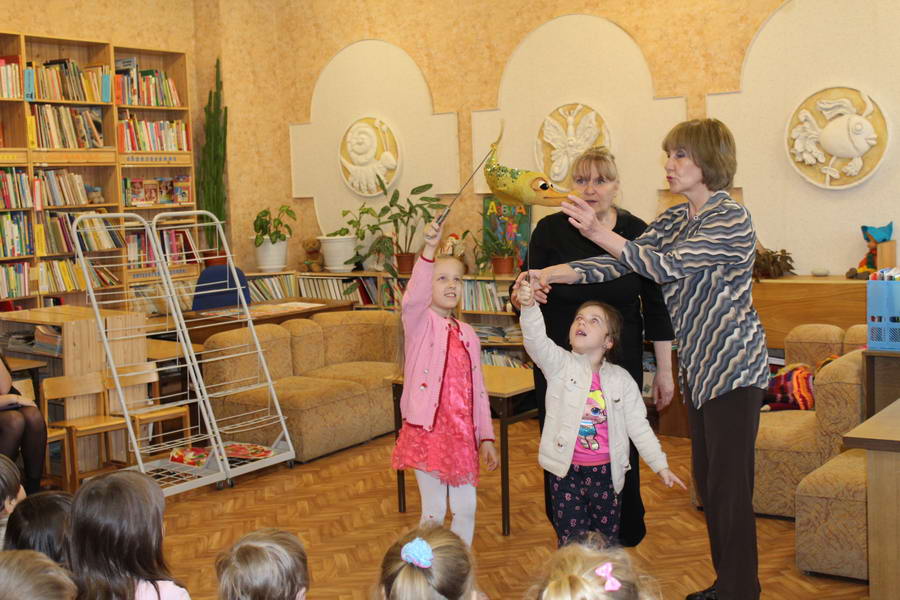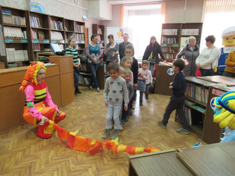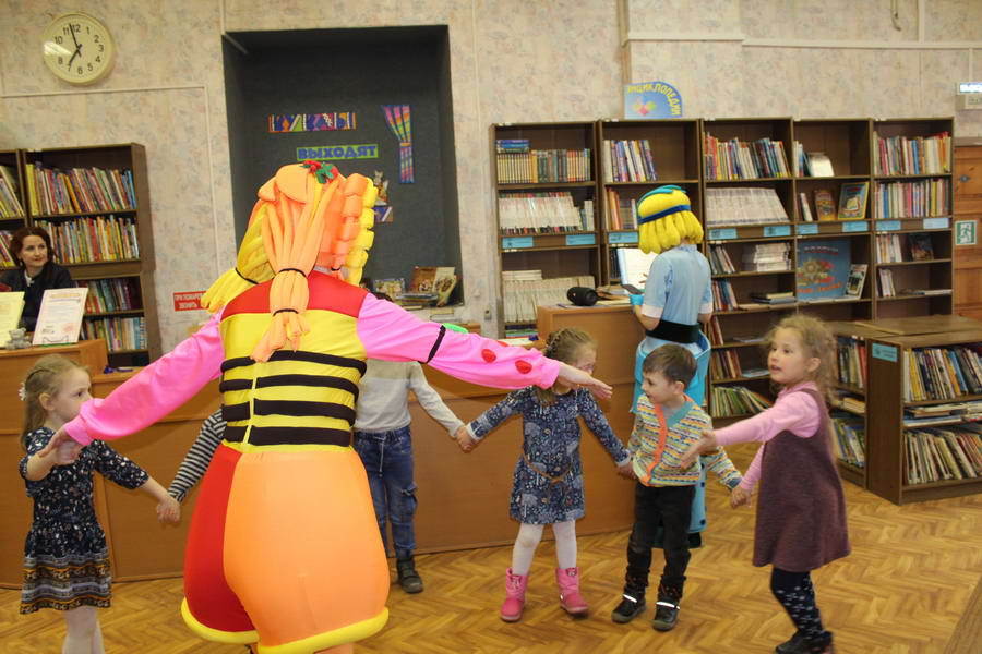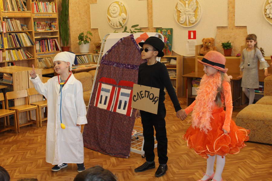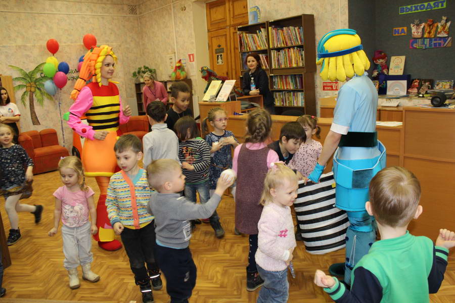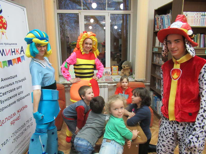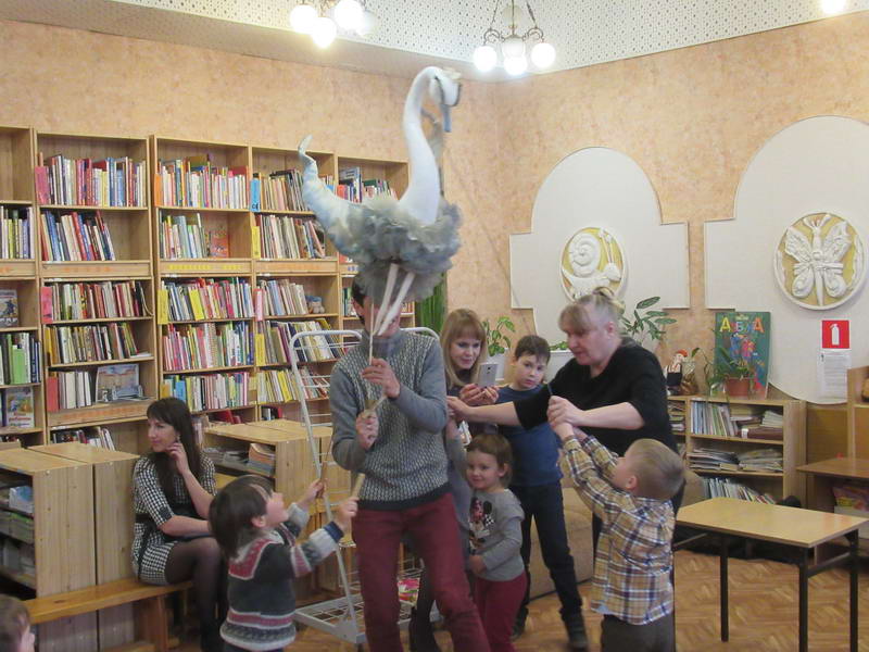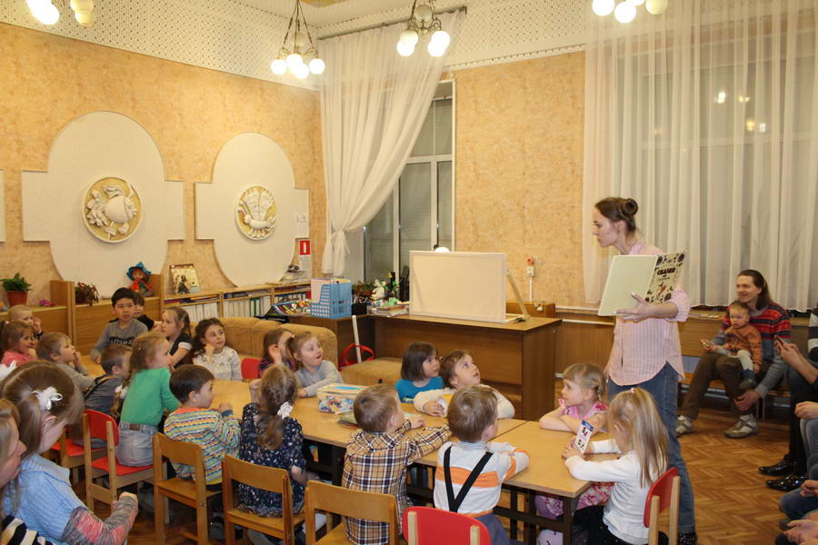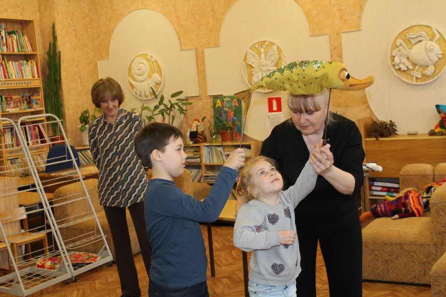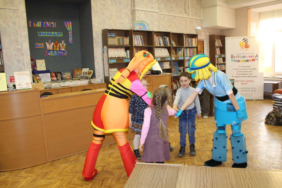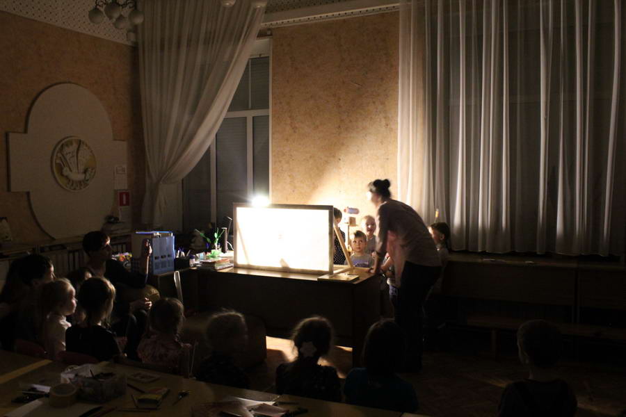 Программу «Дети выходят на сцену» открыл сотрудник отдела «Детство» – робот МАЯК. Представившись, он поприветствовал самых юных гостей и их родителей, рассказал о теме акции. Затем познакомил собравшихся с программой площадки и пригласил в Школу театральных аплодисментов. Старт вечеру дала детская театральная студия «Артистик» (руководитель Т. Зимина) спектаклем «Круговорот сказок», главными героями которого стали сказочные персонажи. В продолжение программы актеры Ивановского театра кукол Светлана Лобанова и Вера Павлова представили мастерскую «Куклы открывают секреты». Они познакомили с репертуаром театра кукол, дали рекомендации родителям о правилах его посещения. Затем рассказали о действе за кулисами во время кукольного представления. Вместе с гостями сделали гимнастику для пальцев, рук и артикуляционного аппарата. Актеры раскрыли некоторые секреты кукольного театра: например, высота ширмы всегда 170 сантиметров; для актеров маленького роста существуют специальные ботинки на платформе. В завершении работы мастерской все желающие смогли примерить необычную обувь, «поиграть» куклами и сфотографироваться с ними. Поддержал тему вечера мастер-класс «Знакомьтесь: Театр теней» от Ирины Дендюк (творческая мастерская «Созвездие Лисы»). Дети и взрослые узнали об особенностях организации театра теней, выбрали сказку для постановки, вспомнили ее содержание и героев, после чего изготовили кукол и разыграли спектакль. Желающих принять участие в представлении было так много, что его пришлось повторить дважды. Также в отделе работала игровая площадка с аниматорами от студии детских праздников «ВитаминкА». Ребята смогли принять участие в замечательной и веселой игровой программе «Сказочный патруль», сфотографироваться с любимыми мультяшными героями. Сеть развивающих центров «Сема» представила ростовую куклу Лего, которая стала интересным объектом для фото. Сюрпризом для маленьких и взрослых участников библиосумерек стала возможность близкого знакомства с необычайными гостями – тропическими бабочками. Закрыл работу детской театральной площадки робот МАЯК, он поблагодарил всех за участие в акции «Библиосумерки – 2019» и пригласил гостей стать друзьями и постоянными читателями библиотеки.