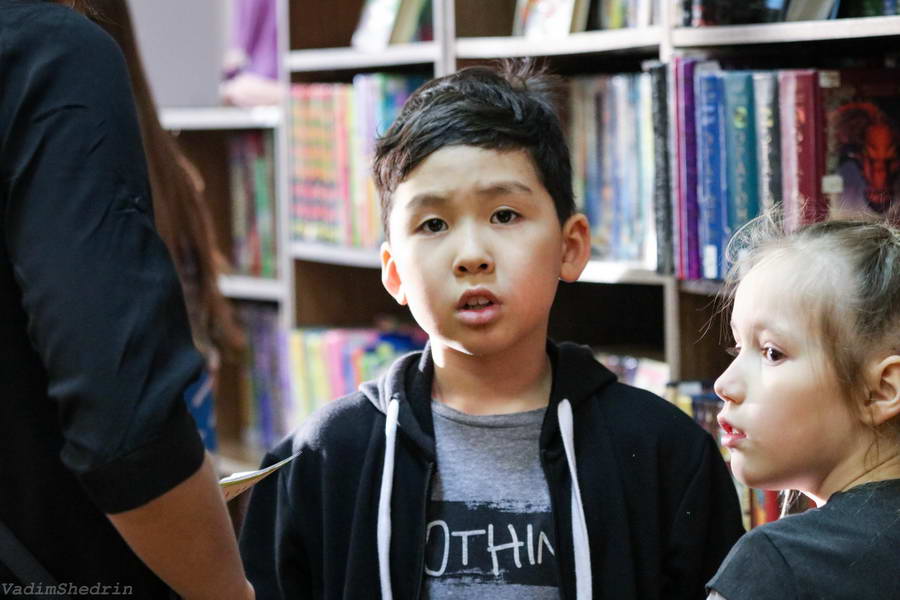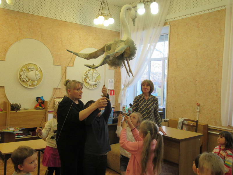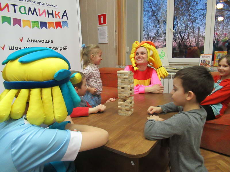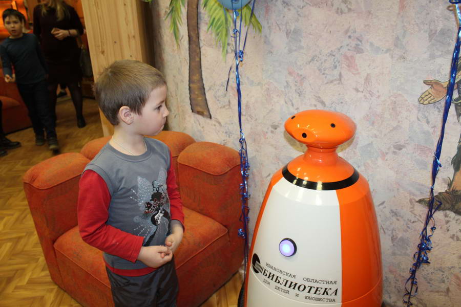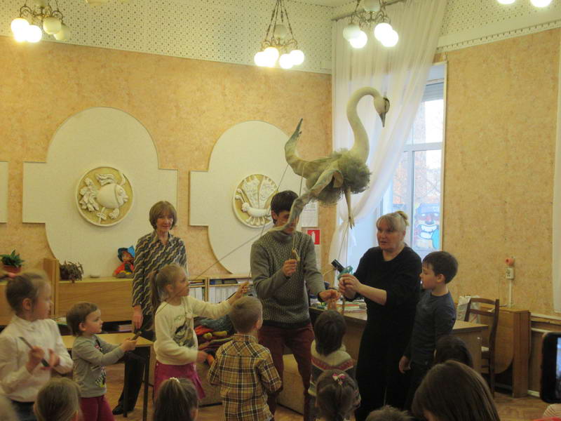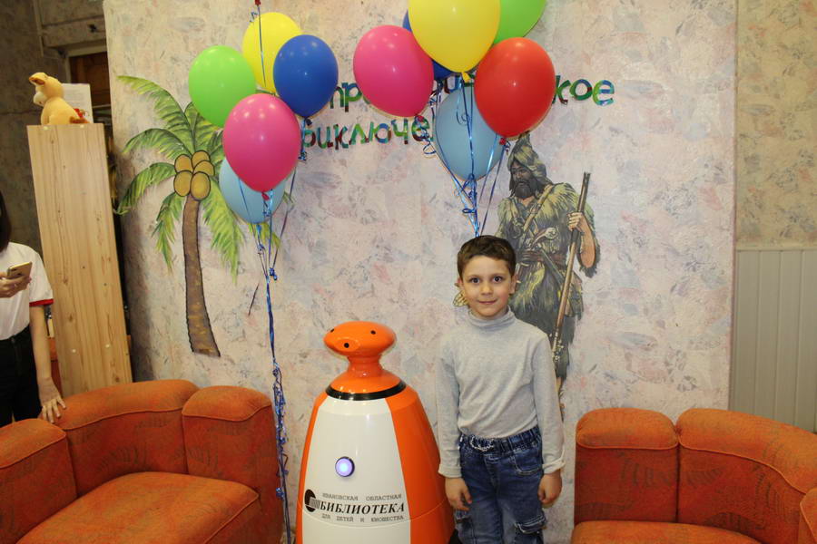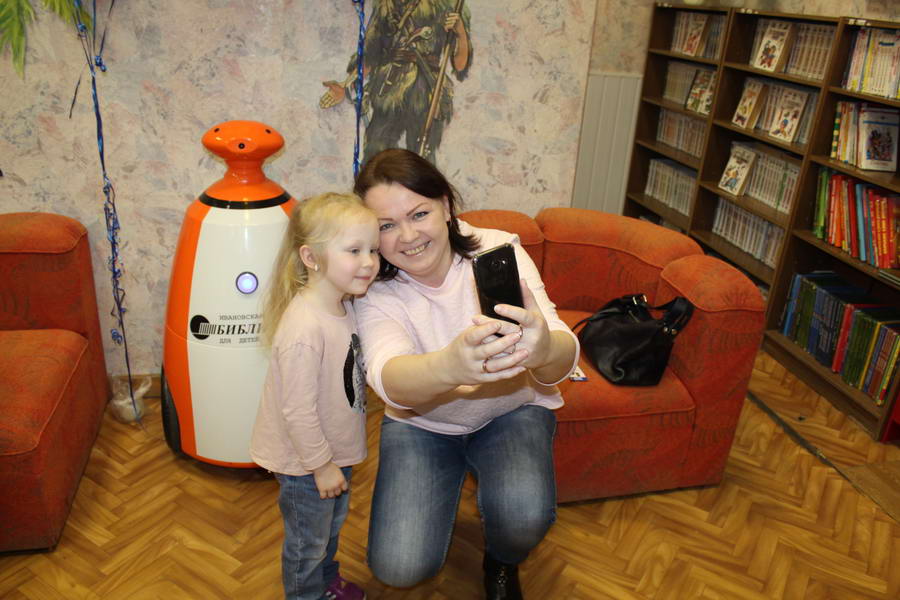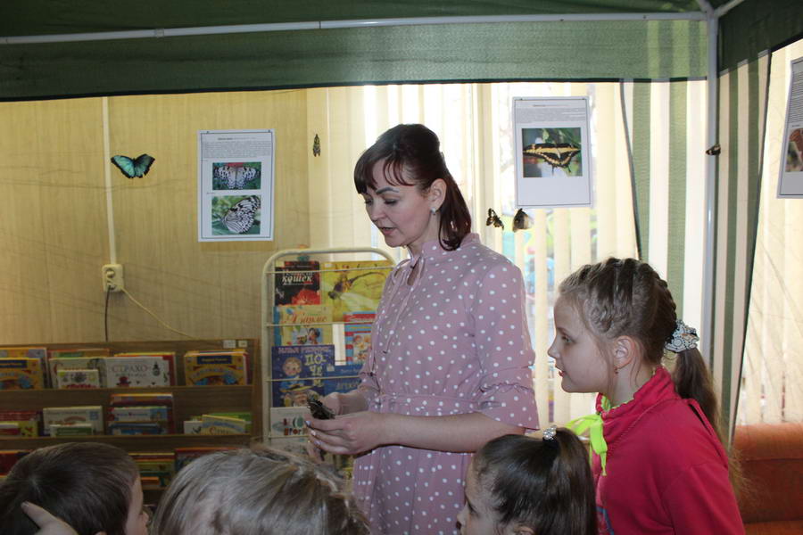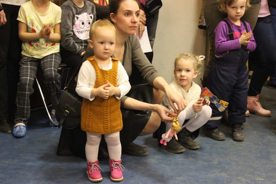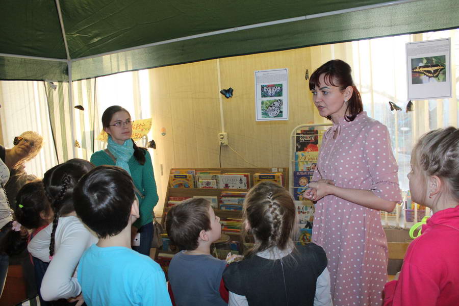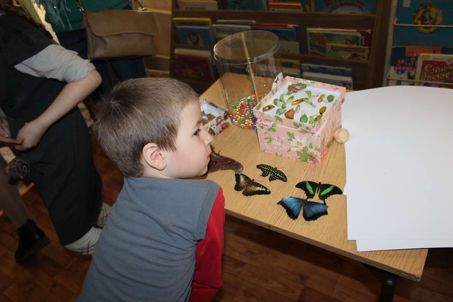 Программу «Дети выходят на сцену» открыл сотрудник отдела «Детство» – робот МАЯК. Представившись, он поприветствовал самых юных гостей и их родителей, рассказал о теме акции. Затем познакомил собравшихся с программой площадки и пригласил в Школу театральных аплодисментов. Старт вечеру дала детская театральная студия «Артистик» (руководитель Т. Зимина) спектаклем «Круговорот сказок», главными героями которого стали сказочные персонажи. В продолжение программы актеры Ивановского театра кукол Светлана Лобанова и Вера Павлова представили мастерскую «Куклы открывают секреты». Они познакомили с репертуаром театра кукол, дали рекомендации родителям о правилах его посещения. Затем рассказали о действе за кулисами во время кукольного представления. Вместе с гостями сделали гимнастику для пальцев, рук и артикуляционного аппарата. Актеры раскрыли некоторые секреты кукольного театра: например, высота ширмы всегда 170 сантиметров; для актеров маленького роста существуют специальные ботинки на платформе. В завершении работы мастерской все желающие смогли примерить необычную обувь, «поиграть» куклами и сфотографироваться с ними. Поддержал тему вечера мастер-класс «Знакомьтесь: Театр теней» от Ирины Дендюк (творческая мастерская «Созвездие Лисы»). Дети и взрослые узнали об особенностях организации театра теней, выбрали сказку для постановки, вспомнили ее содержание и героев, после чего изготовили кукол и разыграли спектакль. Желающих принять участие в представлении было так много, что его пришлось повторить дважды. Также в отделе работала игровая площадка с аниматорами от студии детских праздников «ВитаминкА». Ребята смогли принять участие в замечательной и веселой игровой программе «Сказочный патруль», сфотографироваться с любимыми мультяшными героями. Сеть развивающих центров «Сема» представила ростовую куклу Лего, которая стала интересным объектом для фото. Сюрпризом для маленьких и взрослых участников библиосумерек стала возможность близкого знакомства с необычайными гостями – тропическими бабочками. Закрыл работу детской театральной площадки робот МАЯК, он поблагодарил всех за участие в акции «Библиосумерки – 2019» и пригласил гостей стать друзьями и постоянными читателями библиотеки.