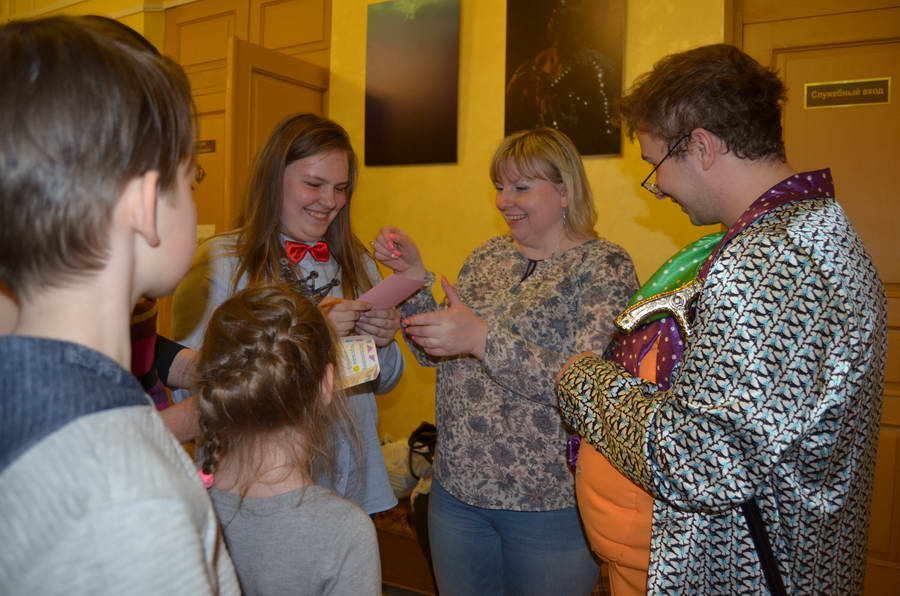 Постичь искусство перевоплощения и гримировки выпало на долю Вилли Вонка. На первый взгляд, он не имеет никакого отношения к этому навыку, но если присмотреться, то можно было заметить, что он старался скрыть свою личность и внешность от всех, и делал он это достаточно успешно, как и многие другие актеры. Эйс Вентура доказал, что суфлер – это важная профессия в театре: если он не сможет четко и понятно говорить, то актеру придется нелегко, ведь разгадать сказанное не так-то и просто. Освоить навык звукооператора получилось у Женщины-кошки. Участники подсказали ей, что отбор реквизита для создания шумов происходит не по эстетическим, а по звуковым качествам. Пройдя все испытания, киногерои стали служителями театра, а их помощники (участники игры-квеста) за свой труд получили вознаграждение – сладкие призы. Талант ведущих, замечательное оформление всех театральных станций, костюмы киногероев создавали эффект полного присутствия. Горящие глаза игроков и гостей акции стали лучшей наградой для организаторов и их помощников.