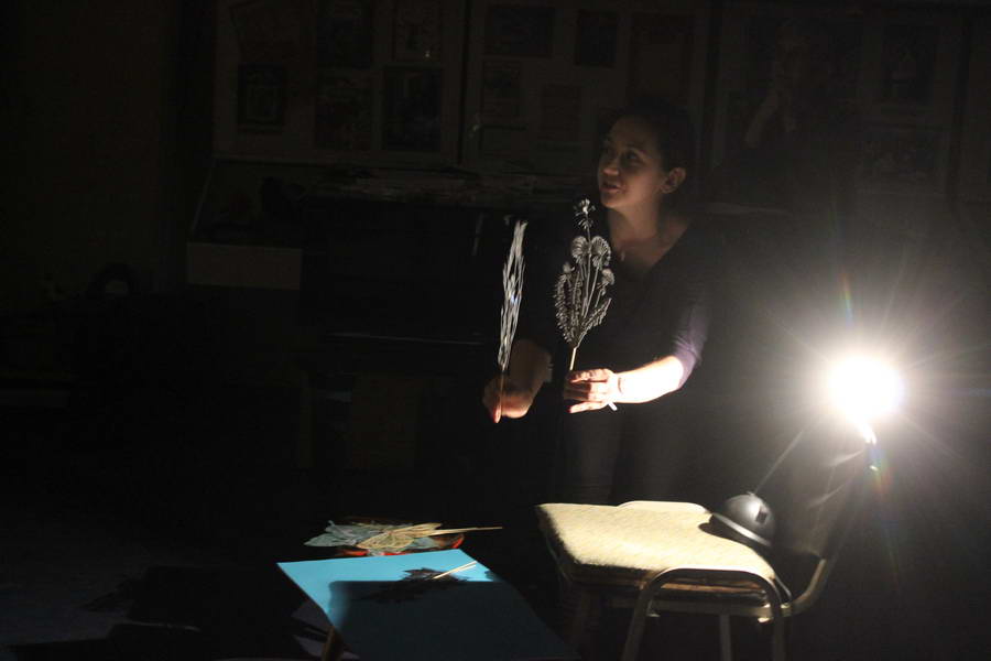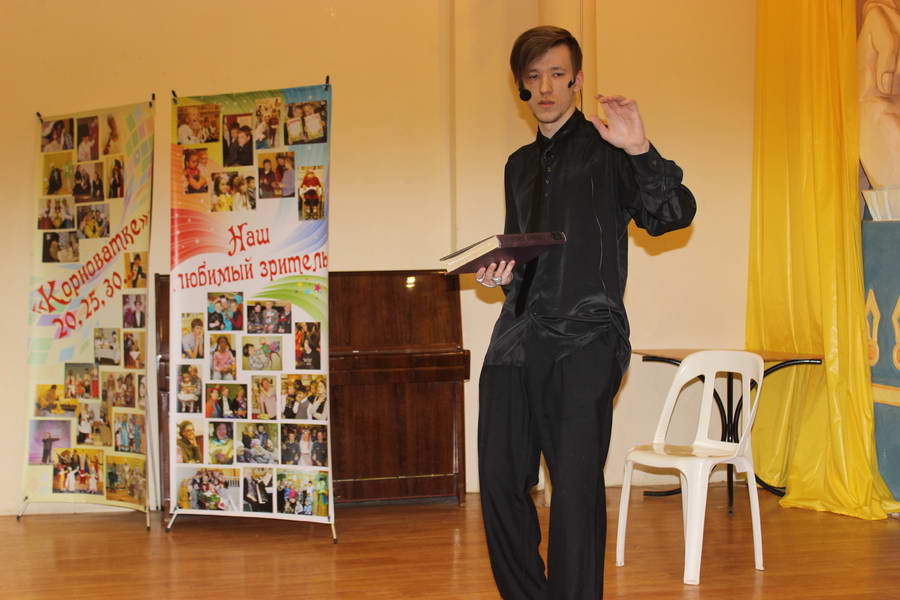 Изюминкой вечера стал «Театр теней» Александры Романовой, авторские работы которой подобны кружеву и выполнены в технике художественного вырезания уникальных авторских рисунков. Публика была поражена изящными фигурами из цветного картона и заворожена необычным действом. Спектакли перемежались с песнями, посвященными театральному искусству («Кабаре», «Арлекино», «Цыганка», «Делу время-потехе час», «Леди Совершенство», «Ах этот вечер», «Карета», «Маленький принц», «Волшебный цветок» и др.) в исполнении И. Смирновой, А. Дубровиной, А. Казак, гитаристов Детской музыкальной школы № 4 с педагогом В. Кульковым. Торжественности добавили танцевальные номера студии исторического танца «Макама» и солистки Ивановского музыкального театра Маргариты Заболошиной. В ходе вечера художественный руководитель театра книги «Корноватка» Ольга Шишкина проверяла знание аудиторией театральной терминологии. Все выступающие были награждены благодарственными письмами, а участники конкурсов шуточными медалями («Любимчик Станиславского», «Лауреат театральной масочки» и т.д.).