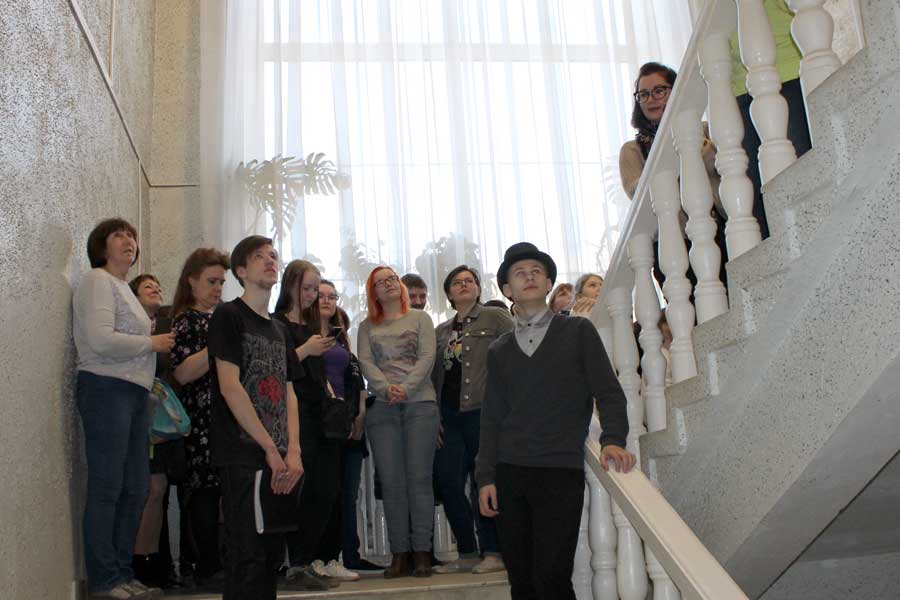 Открытие праздника состоялось на главной лестнице Дома на Крутицкой. Актеры театра книги «Корноватка» помогли гостям погрузиться в театральную атмосферу, исполнив музыкальную композицию «На Крутицкой шесть часов уж без пяти…Год театра? Он давно уже в пути!» на мелодию из кинофильма «Карнавальная ночь». Далее прозвучало приветственное слово директора ИОБДЮ Л.А. Ситновой, которая пожелала аудитории хорошего настроения и новых впечатлений. После открытия акции публика в предвкушении театральных и библиотечных чудес ринулась в залы.