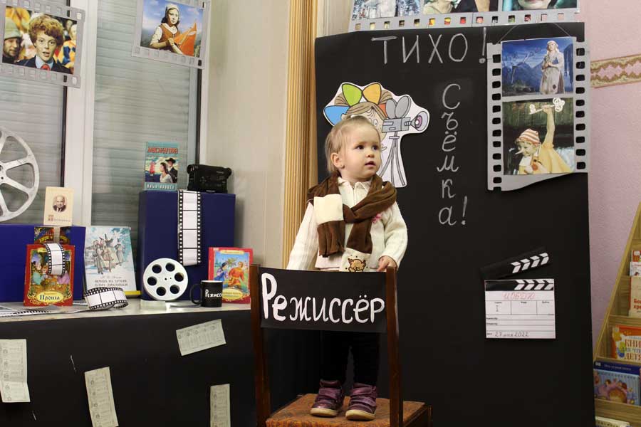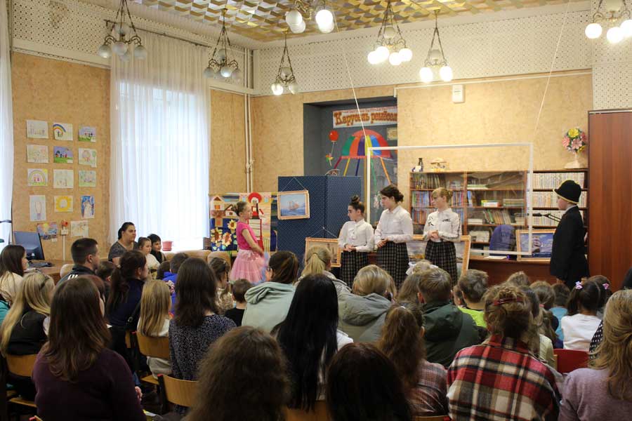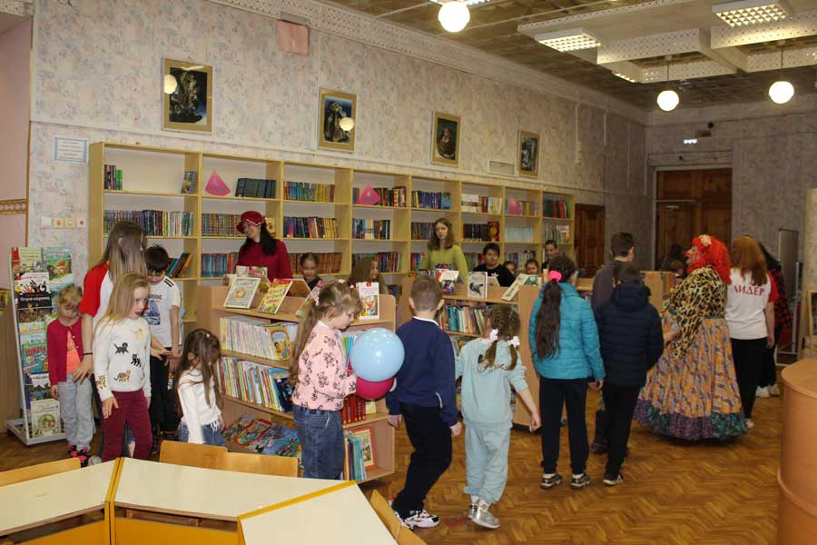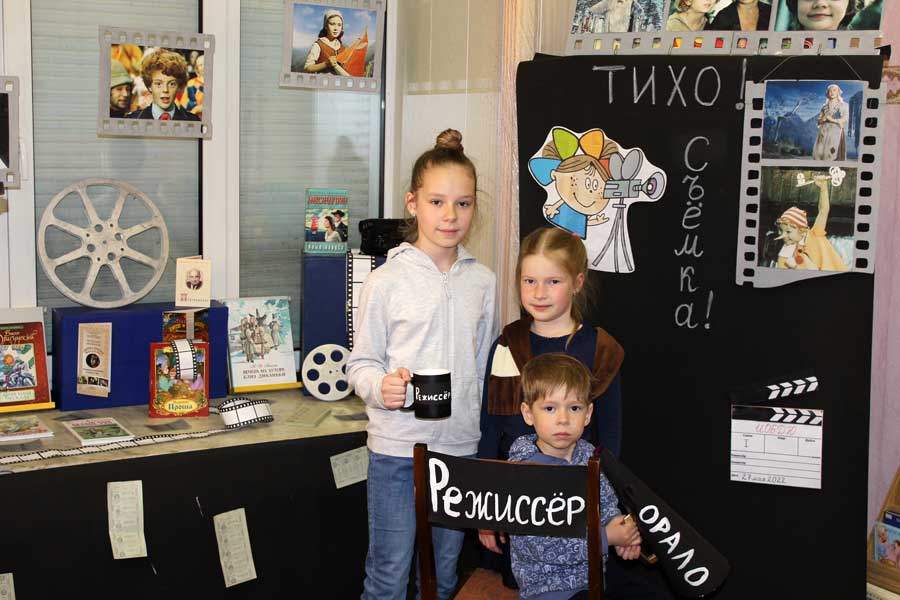 Игра-бродилка «В поисках подарков с Красной Шапочки» стала одним из ярких моментов детской программы. Юные читатели отправились на поиски корзинки с подарками, которые заколдовала злая волшебница. В путешествии они побывали в гостях у Цыганки, Василисы Премудрой, Лисы Алисы. Ребята отгадали загадки, вспомнили мелодии и песни, нашли нужные книги в темном книгохранилище с помощью фонариков и раздобыли волшебную палочку. А добрая фея помогла ребятам расколдовать корзинку, в которой были сладкие призы для всех участников. Весь вечер работала фотозона «Снимается кино», желающие могли запечатлеть себя в роли режиссера детского кино.