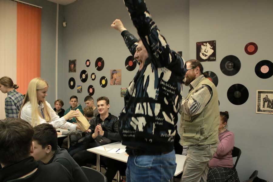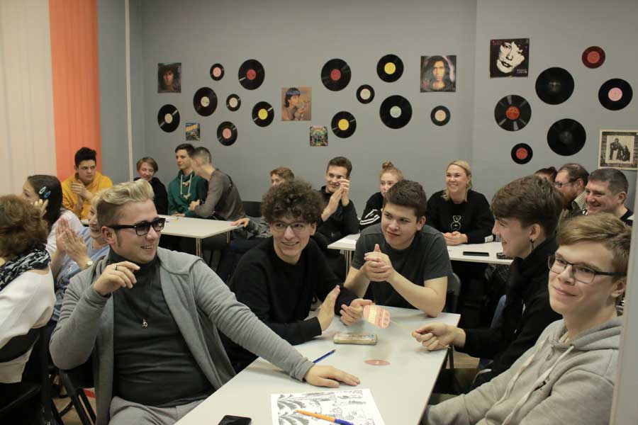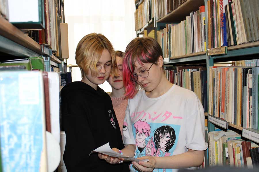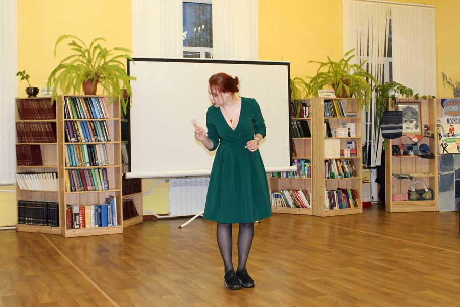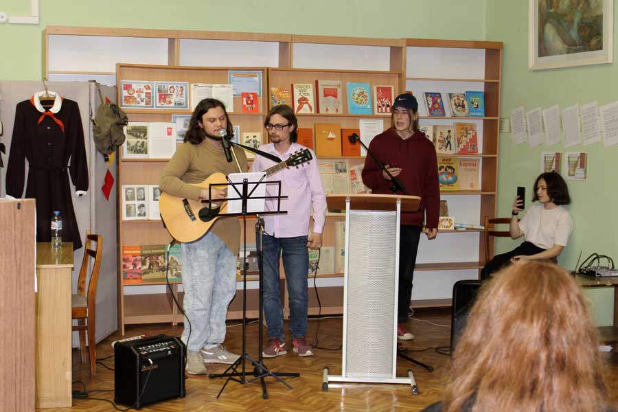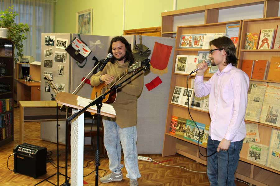 Зал «Литература на иностранных языках» был погружен в атмосферу 60–80-х годов XX века. С проигрывателя «ВЕГА» доносились звуки замечательных мелодий и песен советских времен Валерия Ободзинского, Владимира Высоцкого, Аллы Пугачевой, Валерия Леонтьева, Юрия Антонова, Эдиты Пьехи, мелодии и голоса которых и сейчас волнуют душу, радуют сердца. Под звучание виниловых пластинок хотелось танцевать, кружиться и петь.