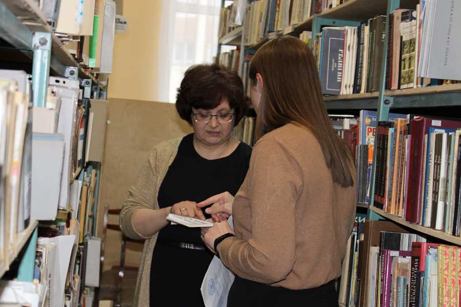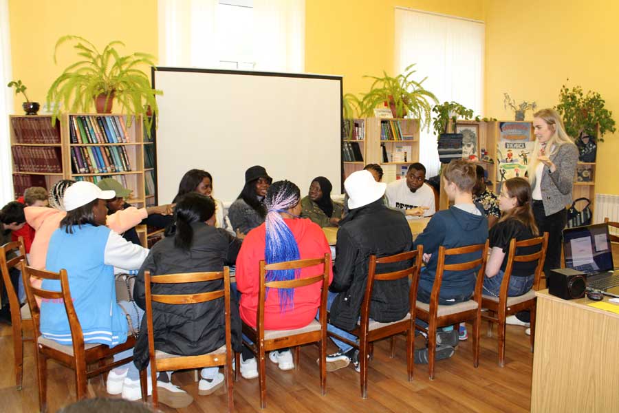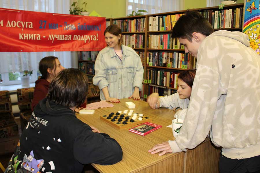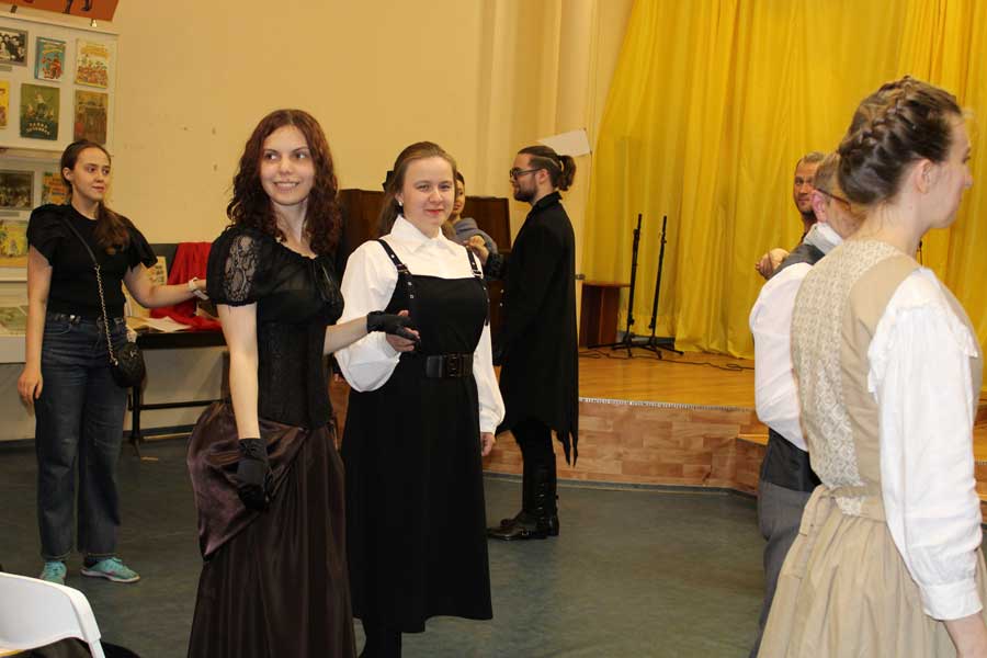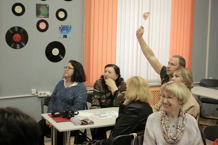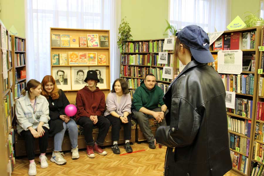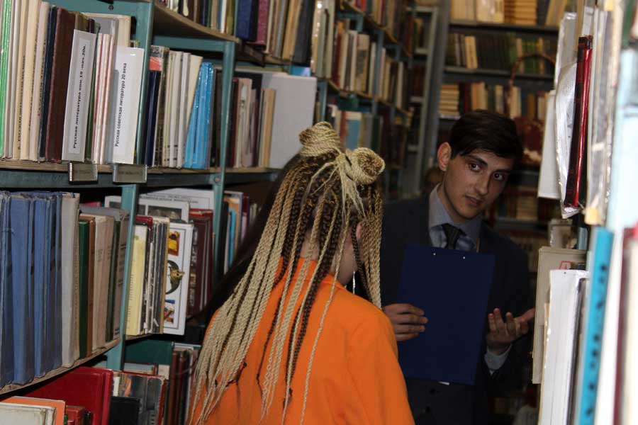 Зал «Литература на иностранных языках» был погружен в атмосферу 60–80-х годов XX века. С проигрывателя «ВЕГА» доносились звуки замечательных мелодий и песен советских времен Валерия Ободзинского, Владимира Высоцкого, Аллы Пугачевой, Валерия Леонтьева, Юрия Антонова, Эдиты Пьехи, мелодии и голоса которых и сейчас волнуют душу, радуют сердца. Под звучание виниловых пластинок хотелось танцевать, кружиться и петь.