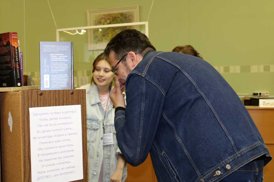 Специальным гостем детской программы стала поэтесса Светлана Сон, которая пригласила участников акции на творческую встречу «Сплошные вверхтормашки». Светлана Леонидовна замечательно пообщалась с юными читателями: рассказала о своем творчестве, новых публикациях и премиях, прочитала стихи. Всем желающим поэтесса дарила автографы и пожелания.