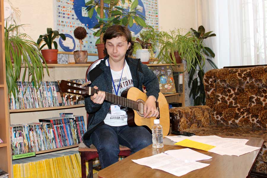 Звучала в зале и живая музыка. Степан Кузьмин очаровал аудиторию замечательной игрой на гитаре и нежным голосом. Он исполнил композиции разных жанров, а желающие могли ему подпевать. С удовольствием гости акции писали чернилами. Много слов благодарности в адрес библиотеки было оставлено перьевой ручкой. Здесь же были расположены фотозоны «Пингвины&медведи» и «Школьный уголок».