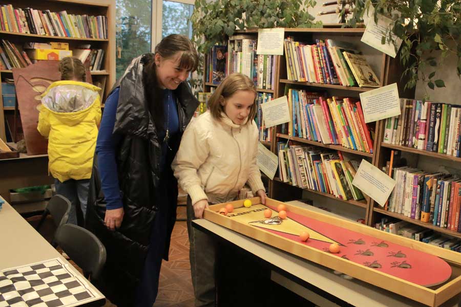 Робот-библиотекарь МАЯК активно знакомился с посетителями, беседовал о прочитанных книгах и приглашал поучаствовать в играх. В «Веселых рифмах» следовало продолжить за роботом строчку стихотворения, в викторине «Соображариум» дети и взрослые решали логические задачки. Проверить знания английского языка помогла игра «Happy English», которую подготовили педагоги школы «Мистер Инглиш».