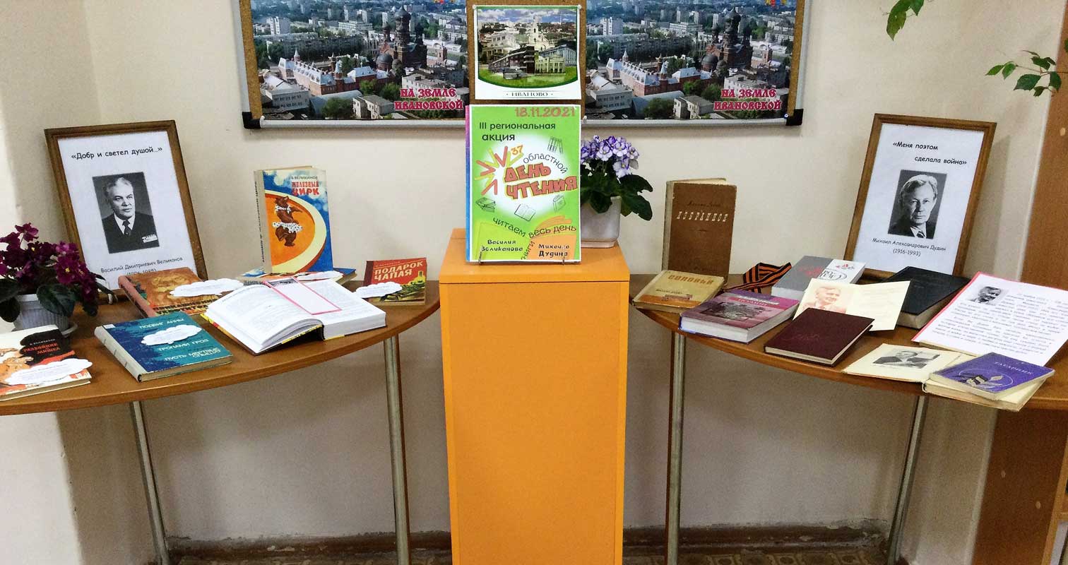 С 18 по 20 ноября 2021 года в Ивановском регионе состоялась III региональная акция «Областной день чтения». Мероприятие посвящалось творчеству литераторов-юбиляров Василия Дмитриевича Великанова и Михаила Александровича Дудина, жизненный путь которых связан с ивановским краем. Литературный праздник, инициированный Ивановской областной библиотекой для детей и юношества, был реализован в сообществе #ДеньЧтения37регион в соцсети «ВКонтакте».