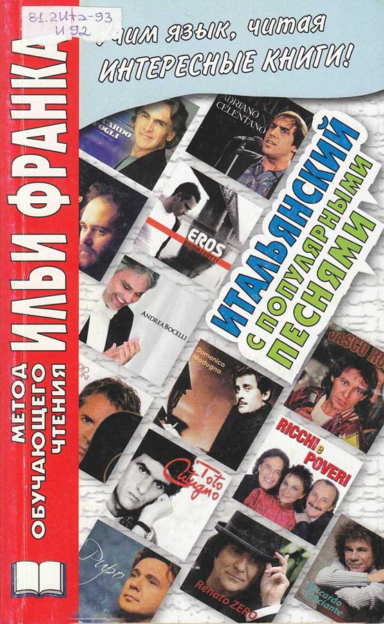 Итальянский с популярными песнями = L'italiano con le canzoni popolari. – Москва : Восточная книга, 2014. – 144 с. – (Метод обучающего чтения Ильи Франка). – На рус. яз.