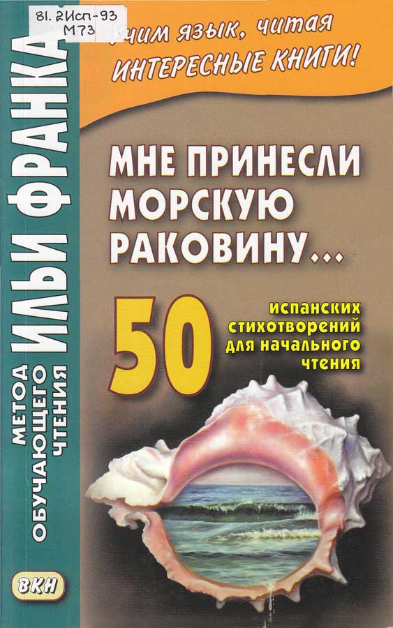Мне принесли морскую раковину... = Me han traido una caracola... : 50 испанских стихотворений для начального чтения : пособие / подгот. Илья Франк. – Москва : Издательство ВКН, 2016. – 96 с. – (Метод обучающего чтения Ильи Франка).