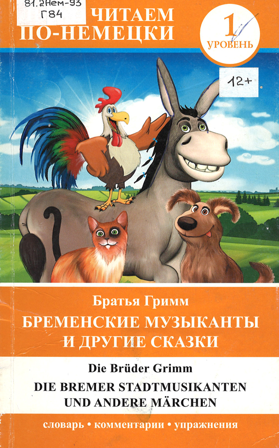 Гримм, Я. Бременские музыканты и другие сказки = Die Bremer Stadtmusikanten und andere Märchen : [на немецком языке] / братья Гримм ; адапт. текста, коммент., упражнения и словарь Е.А. Нестеровой. – Москва : Lingua : АСТ, 2015. – 128 с. – (Легко читаем по-немецки. 1 уровень).