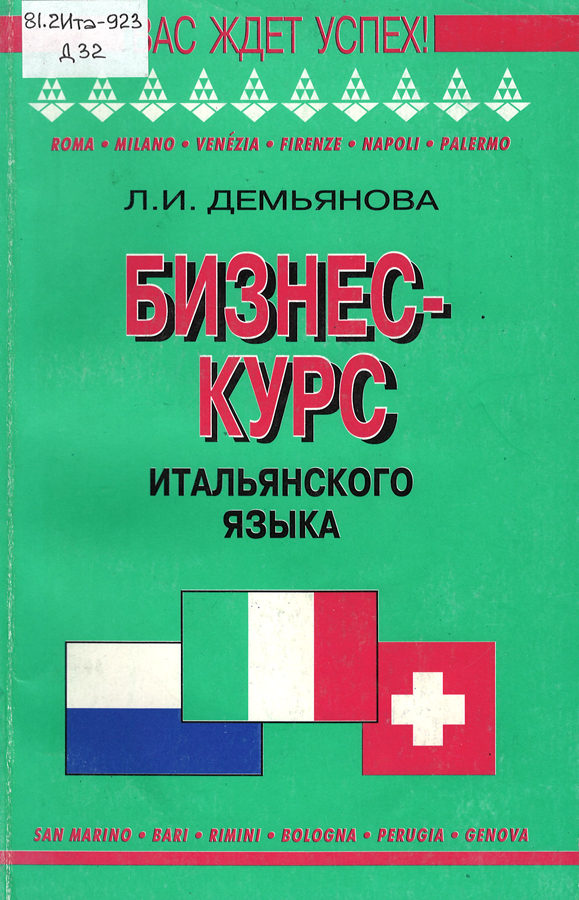 Демьянова, Л.И. Бизнес-курс итальянского языка : учебное пособие / Людмила Ивановна Демьянова. – Киев : Логос, 2000. – 320 с. : ил. – (Вас ждет успех!).
