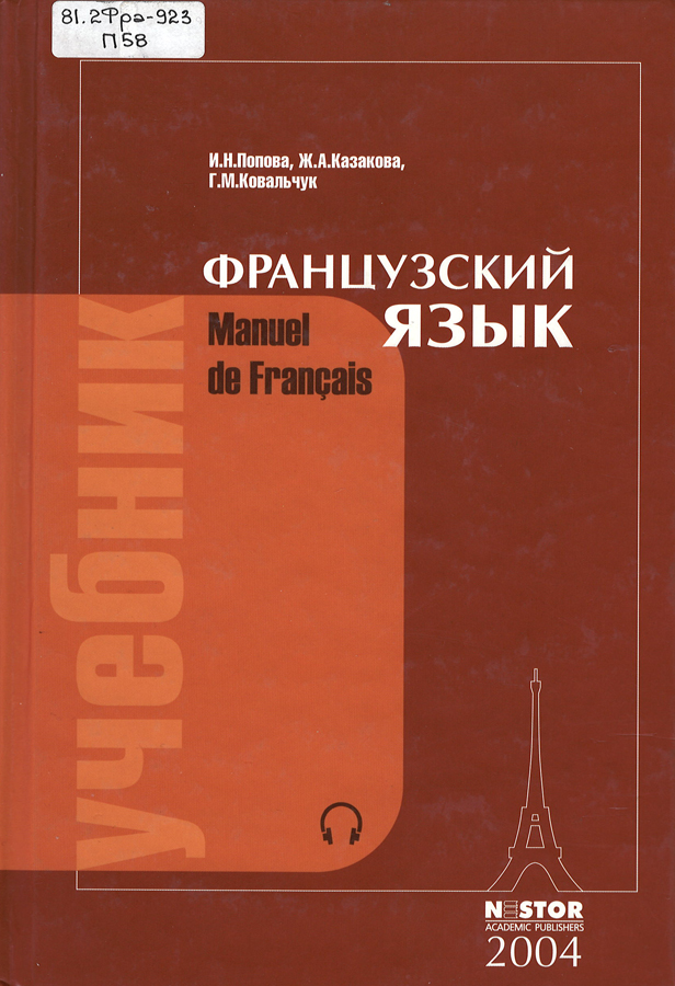 Попова, И.Н. Французский язык = Manuel de francais : учебник для 1 курса ВУЗов и факультетов иностранных языков / Ирина Николаевна Попова, Ж.А. Казакова, Г.М. Ковальчук. – Изд. 20-е, перераб. и доп. – Москва : Нестор Академик Паблишерз, 2004. – 576 с.