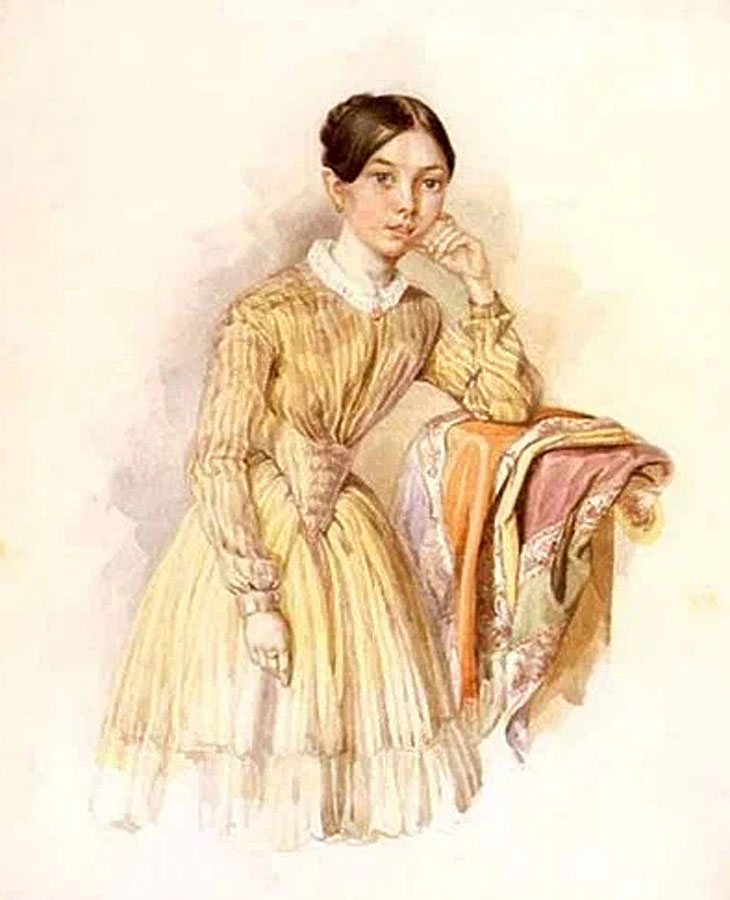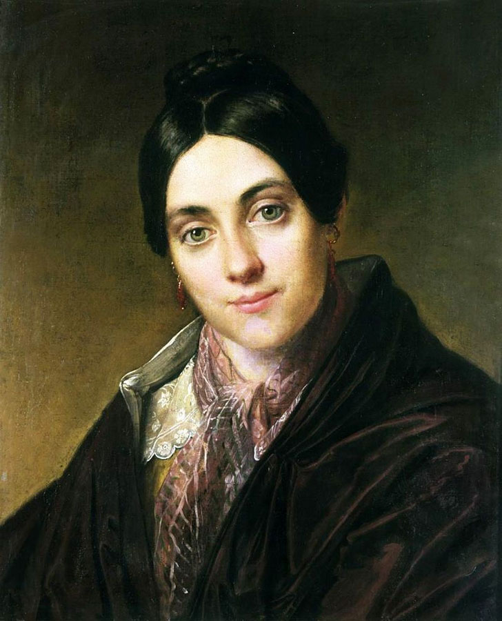 Любовь Корниловна (1800-1886) – мать художников Константина, Николая, Владимира и Александры Маковских – входила в число первых красавиц Москвы. Она обладала прекрасным голосом, часто выступала в концертах. Неслучайно Николай Рубинштейн – пианист, дирижер, выдающийся педагог, основатель московской Консерватории пригласил ее в качестве учительницы пения. Портреты Любови Корниловны писали выдающиеся художники Карл Брюллов и Василий Тропинин. Работа Тропинина заслуживает особого внимания. Она в полной мере дает нам возможность представить облик этой замечательной женщины. Художник писал портрет по просьбе ее мужа. Очевидно, руководствуясь его пожеланиями, Тропинин изобразил свою героиню такой, какой ее привыкли видеть дома. Именно поэтому впоследствии работу называли «портретом в халате и туфлях». Чувствуется, что автор испытывал к модели глубокую симпатию: образ наполнен особой теплотой, его хочется рассматривать, восхищаясь красотой женщины, жившей более двух столетий назад.