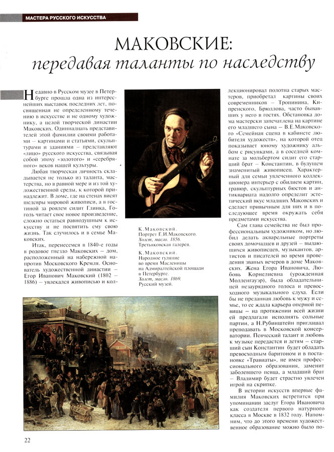 - Чижмак, М. Маковские : передавая таланты по наследству… // Юный художник. – 2009. – N 5. – С. 22 – 28.
