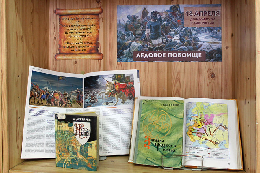 18 апреля 2026 года в Зале культурно-досуговых программ отдела «Отрочество. Юность» начала работу книжная выставка «Александр Невский – защитник земли Русской». Экспозиция приурочена ко Дню победы русских воинов над немецкими рыцарями на Чудском озере (Ледовое побоище, 1242 год) и 805-летию со дня рождения князя. Выставка раскрывает многогранность образа Александра Невского: как полководца, дипломата, государственного деятеля и святого.